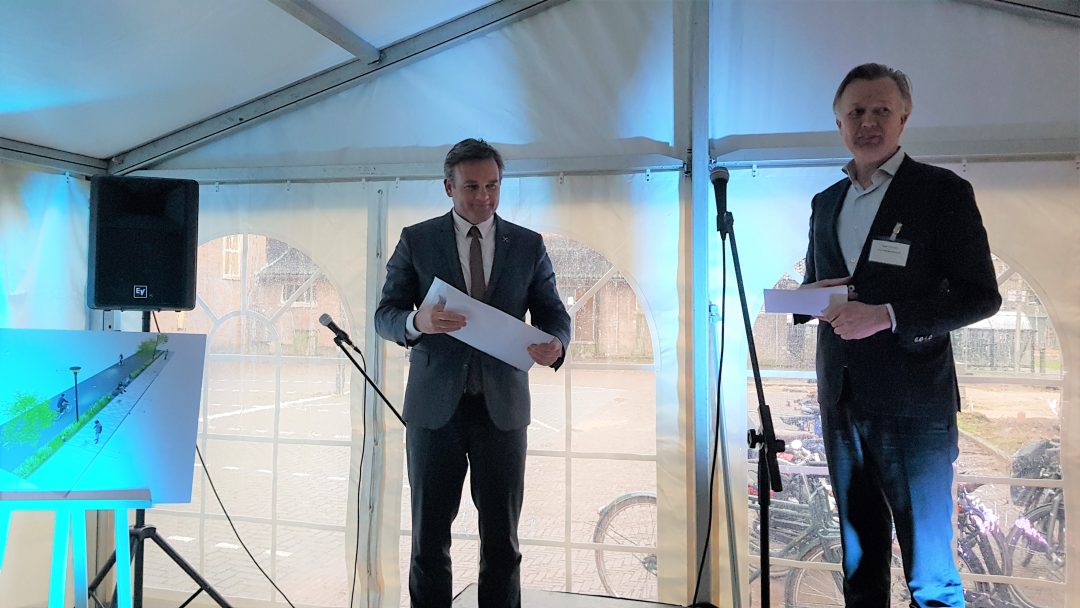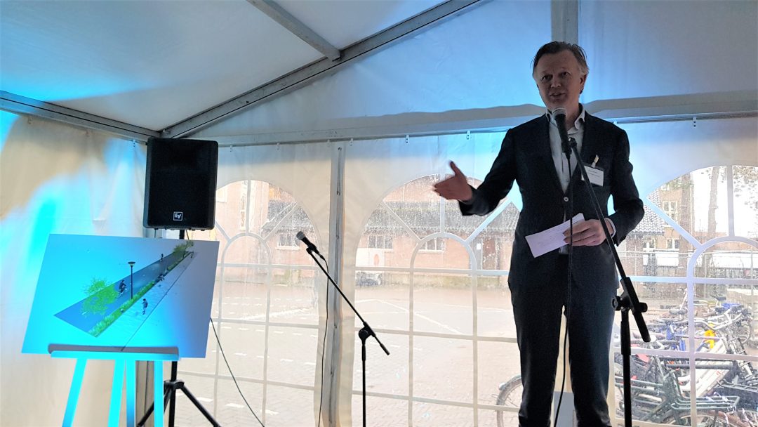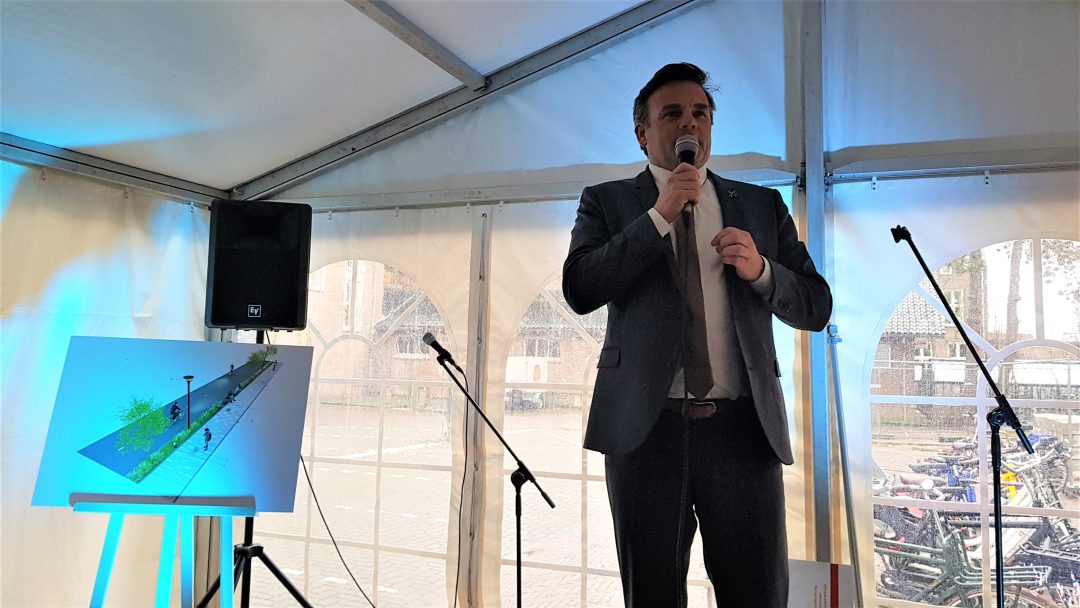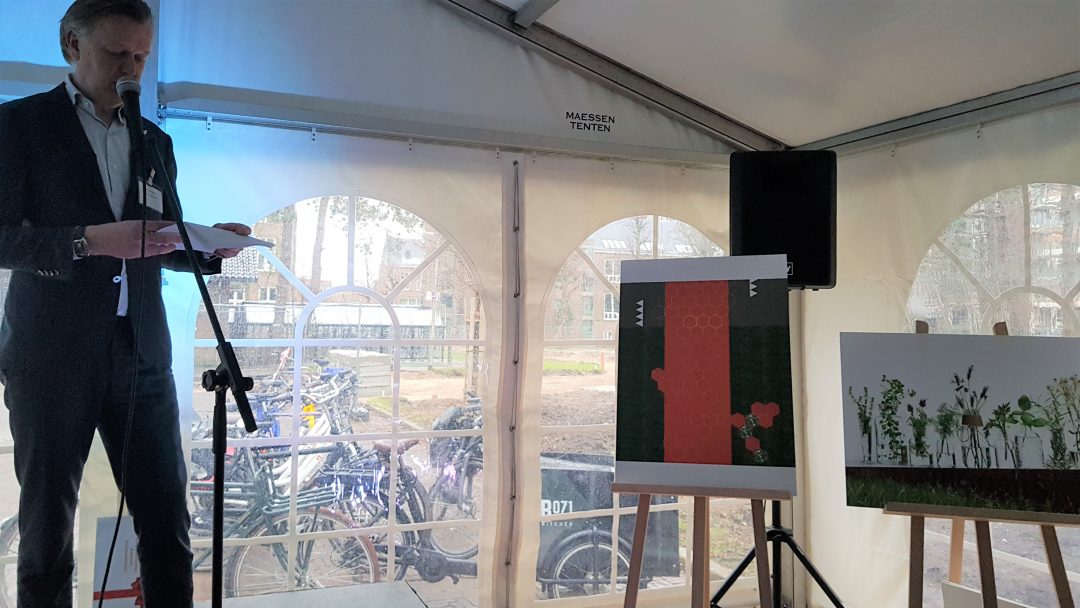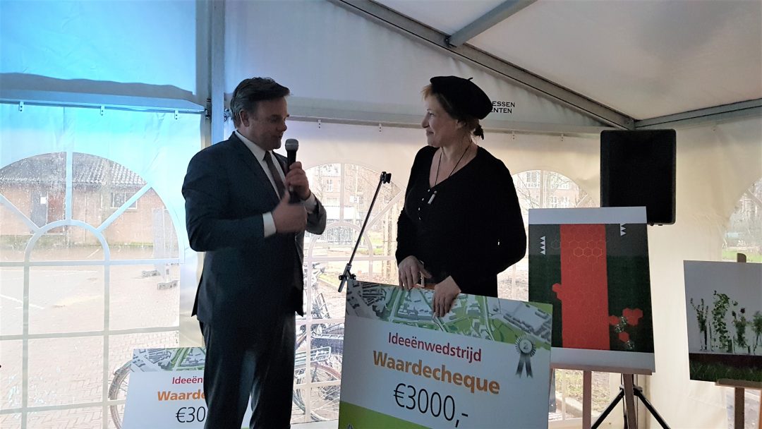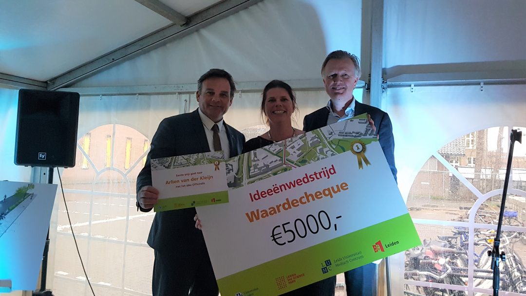 Wethouder Paul Dirkse (Kennis, Onderwijs, Sport en Financiën) heeft woensdagmiddag tijdens een feestelijke bijeenkomst de winnaars bekend gemaakt van de ideeënwedstrijd voor de Hartlijn in het Leiden Bio Science Park. De beste drie ideeën voor de Hartlijn worden beloond met geldprijzen. Het winnende idee, ‘Officinalis’ van Arlien van der Kleijn, wordt ook daadwerkelijk uitgevoerd. Daarvoor is een budget beschikbaar van 150.000 euro.