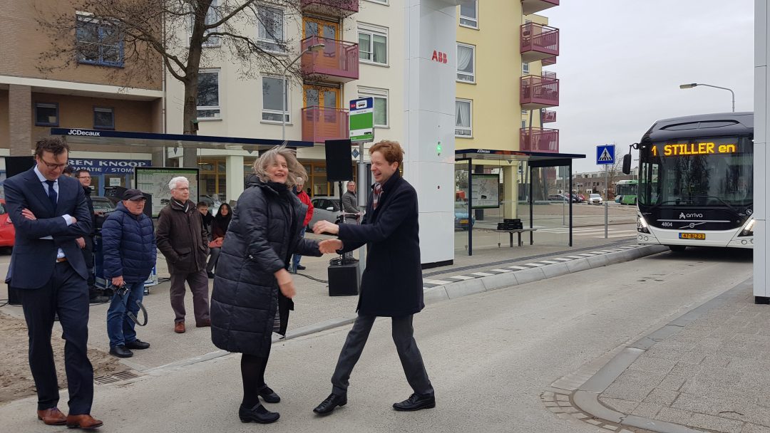 Chris de waard reed een geruisloos rondje mee en sprak onderweg met Arriva-directeur Martijn van de Weijger, wethouder Martine Leewis en gedeputeerde Floor Vermeulen.