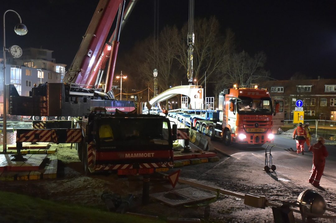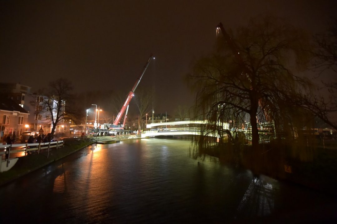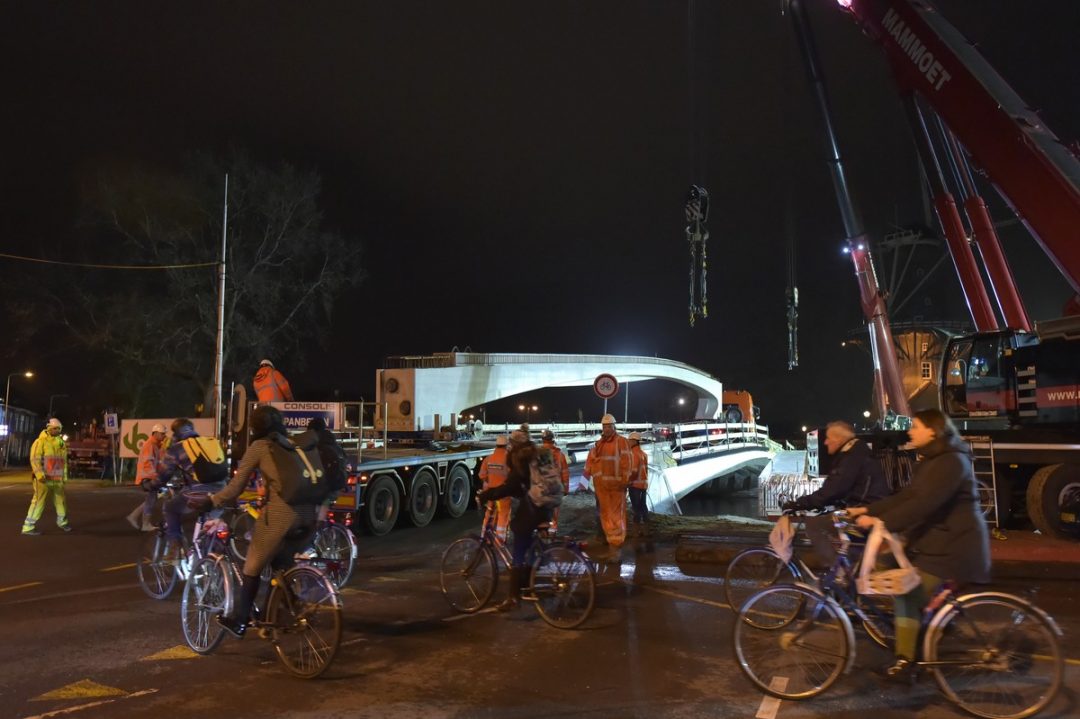 Gistermiddag en -avond zijn de resterende betonnen liggers van de nieuwe Valkbrug op hun plek gelegd. Deze zijn nodig voor de laatste twee brugdelen van de nieuwe brug over de Rijnsburgersingel tussen de Molenwerf en het Schuttersveld. De liggers zijn elk 30,50 meter lang. De zwaarste wegen circa honderd ton. De werkzaamheden duurden tot in de nacht.
