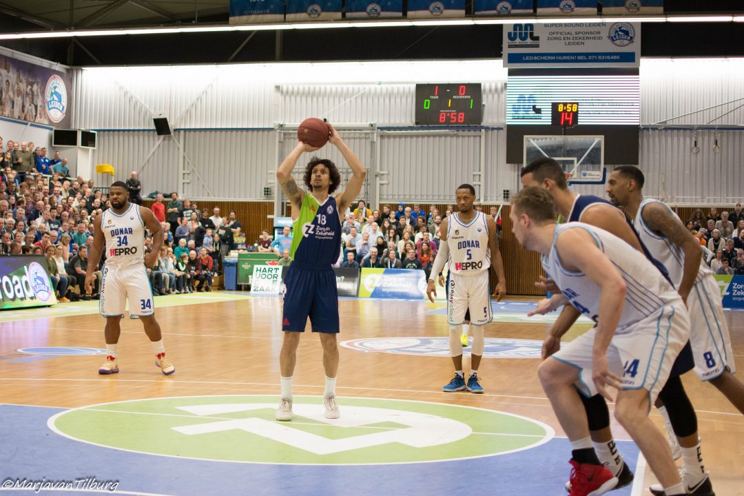 Het zijn zware tijden voor Zorg en Zekerheid Leiden. Woensdag werd op Sardinië van Dinamo Sassari verloren in een wedstrijd waarin de Leidse ploeg het zonder Worthy de Jong moest stellen en Mohamed Kherrazi zich na zes minuten opnieuw blesseerde, dit keeer aan zijn knie. Kherrazi moest de tweede wedstrijd uit de halve finale van het bekertoernooi dan ook noodgedwongen vanaf de kant bekijken. Het scheelde dat Drago Pasalic bij Donar ook niet in actie kwam.