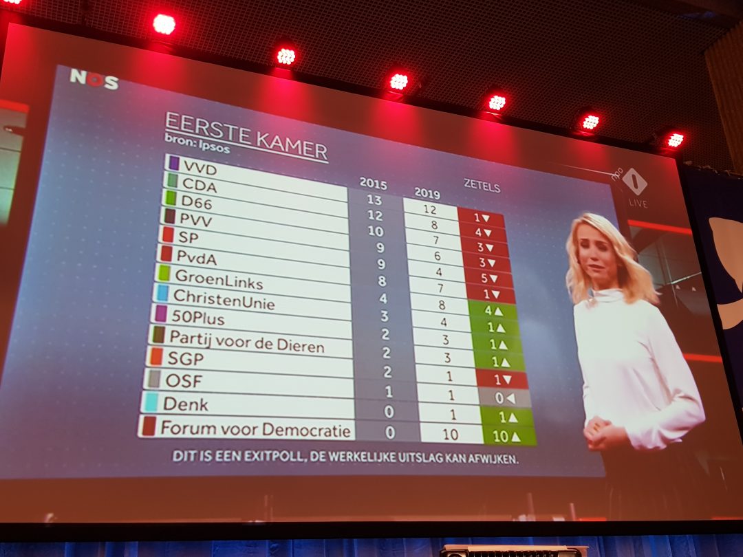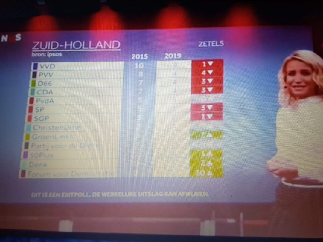 Ongeloof. Dat was waarschijnlijk de meest gevoelde emotie in het Provinciehuis van Zuid-Holland toen daar tijdens de uitslagenavond even na 21.00 uur de exitpoll van de NOS bekend werd. Forum van Democratie wordt op basis van die gegevens als nieuwkomer in één klap de grootste partij met tien zetels in Provinciale Staten. De VVD volgt met negen zetels en houdt het verlies beperkt. De partij had er tien.