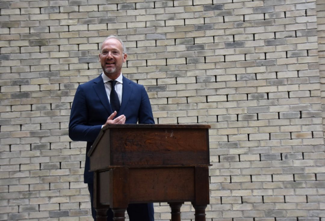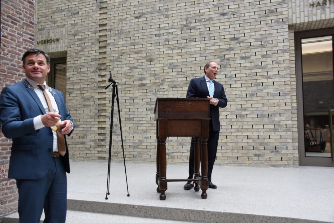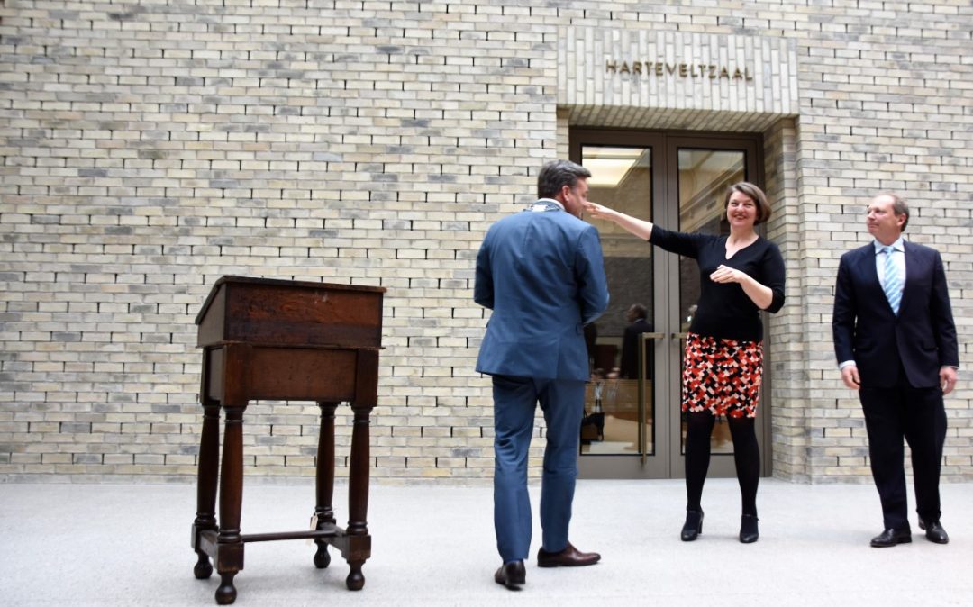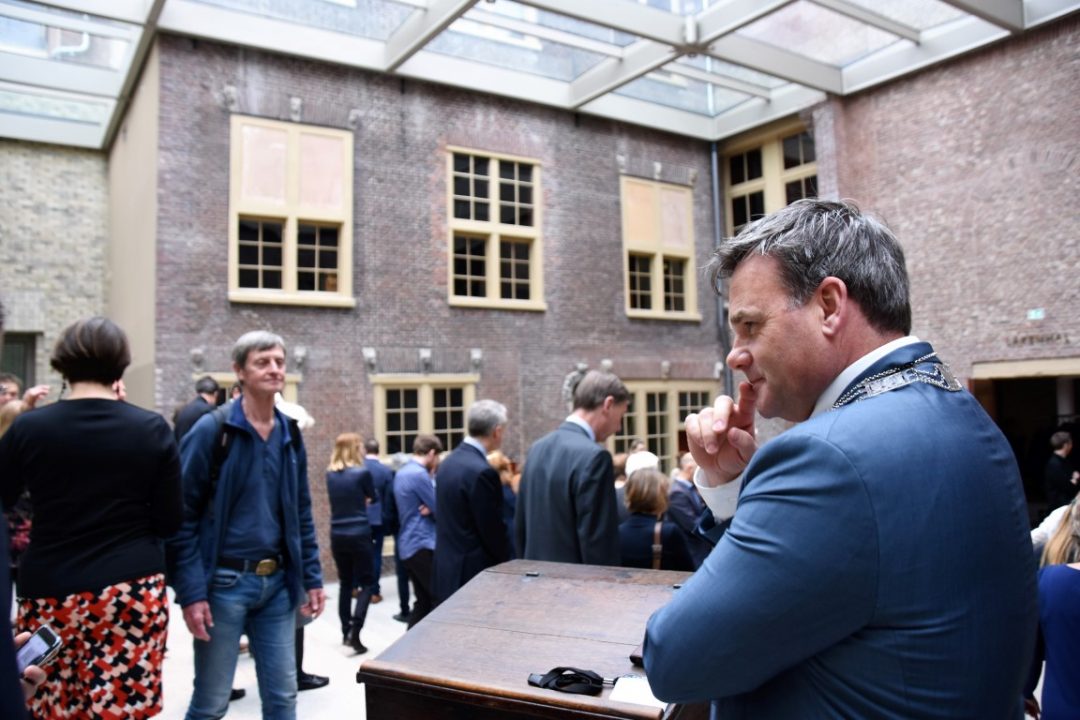Chris de Waard sprak achtereenvolgens met museum-directeur Meta Knol, voorzitter Haro Schultz van Haegen van de Vereniging van Belangstellenden in Museum De Lakenhal en met achter-achterneef Mike van Steijn.