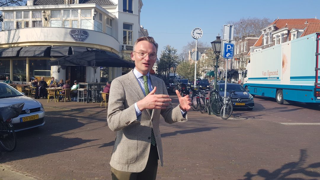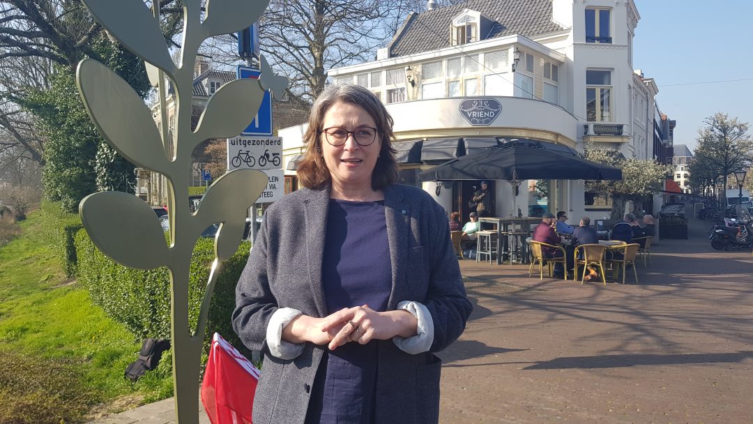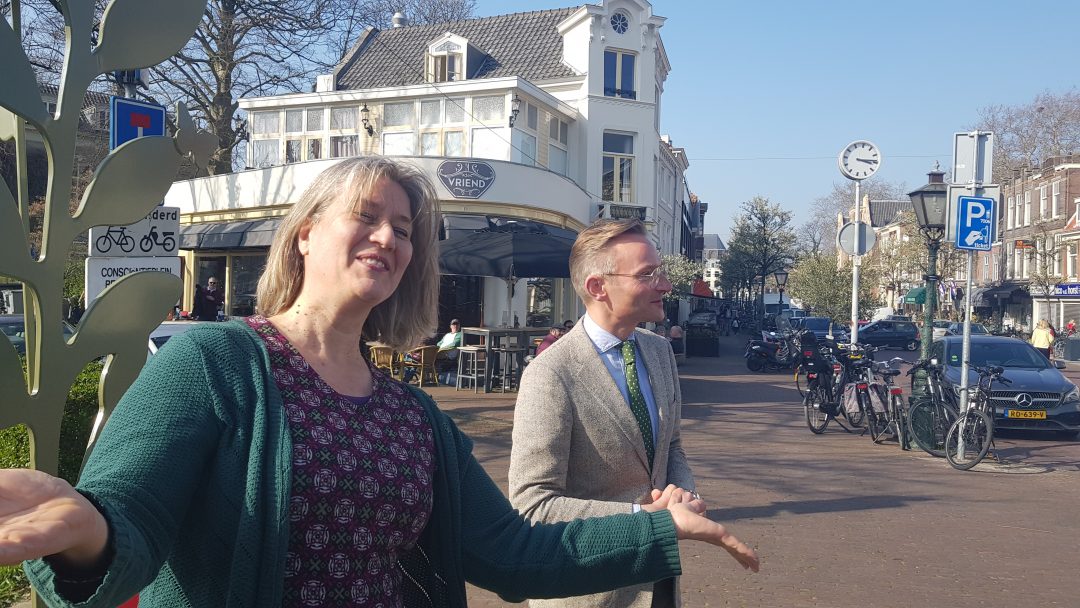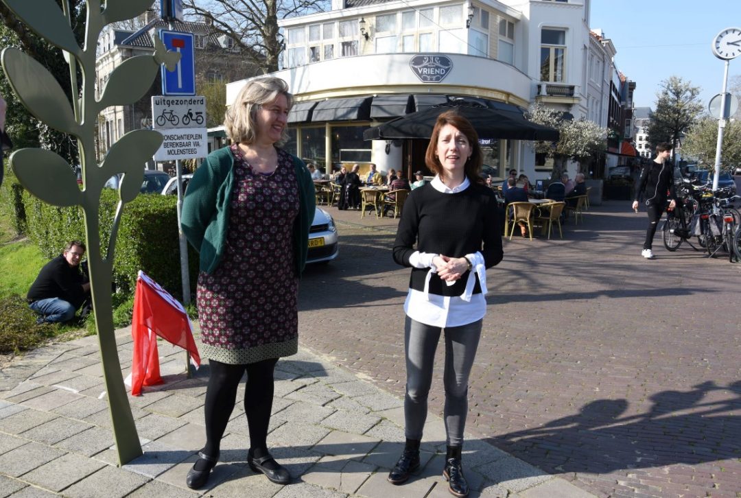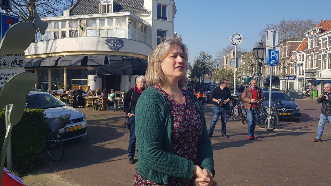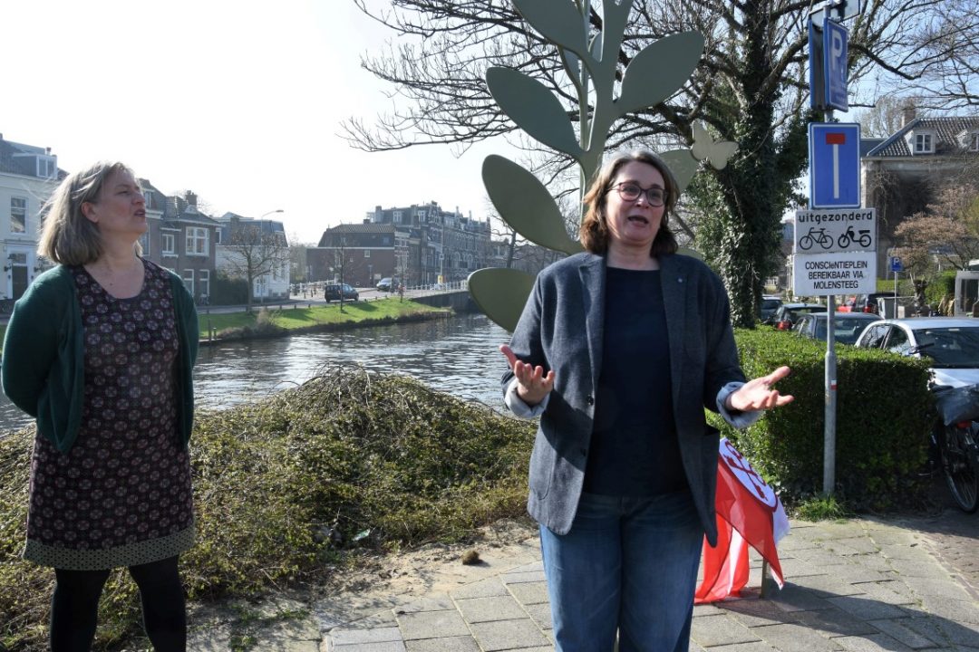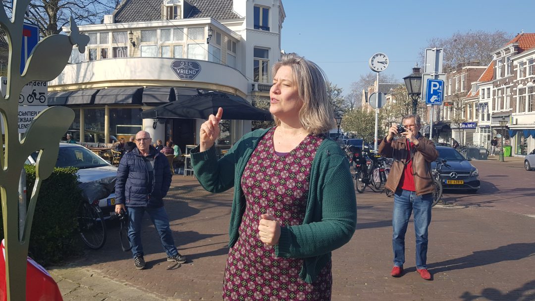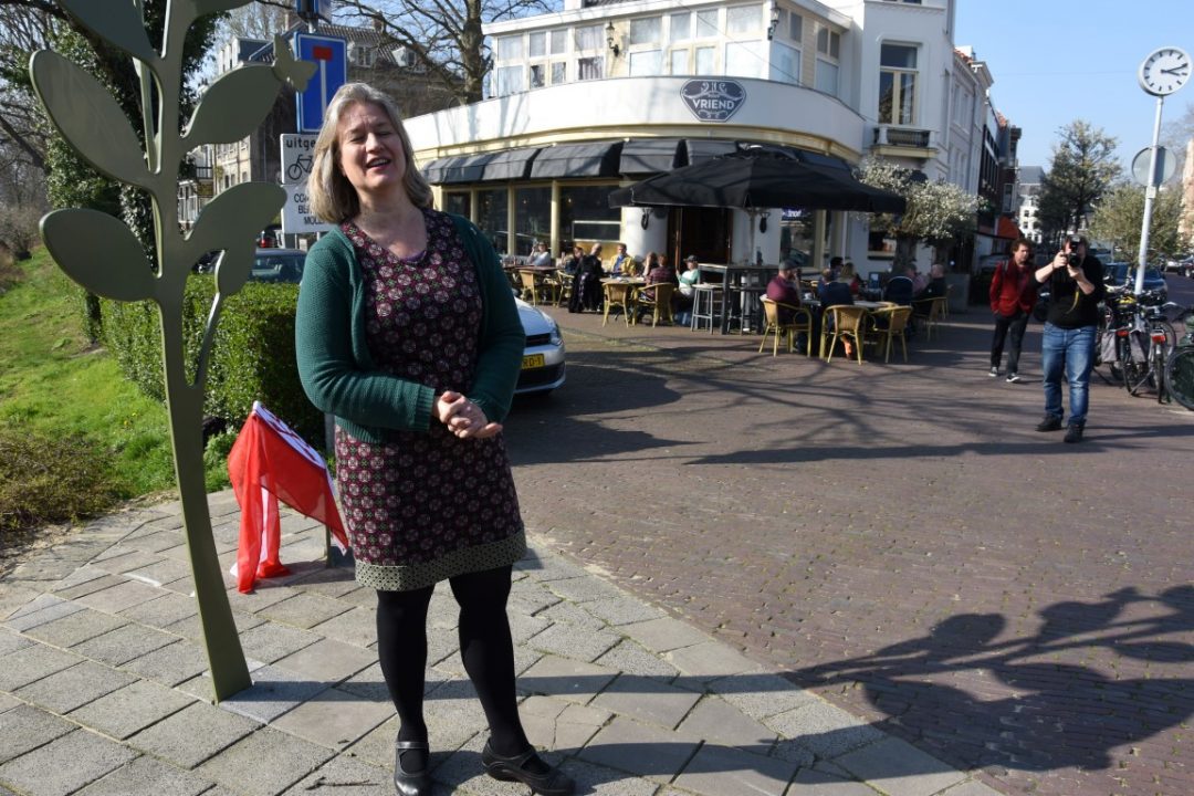 Chris de Waard was bij de onthulling op de plek waar de Jan van Houtkade over gaat in de Boisotkade en sprak met wethouder Martine Leewis, Holland Rijnland-bestuurder Nanning Mol en Claudia Brown van de Vrienden van het Singelpark.