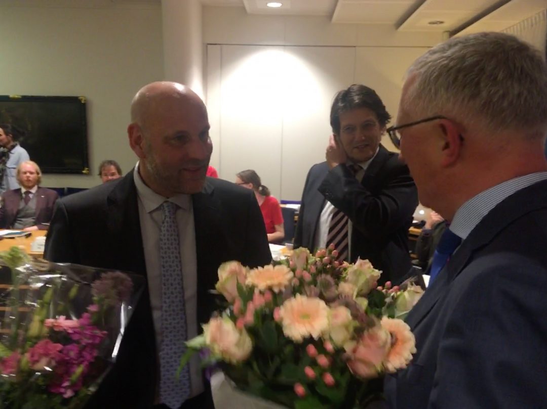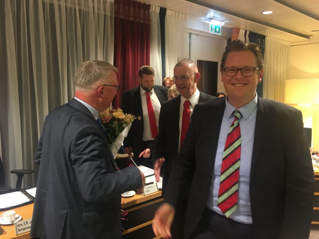 IJsbrand Terpstra in gesprek met de net geïnstalleerde nieuwe wethouder Peter Glasbeek
