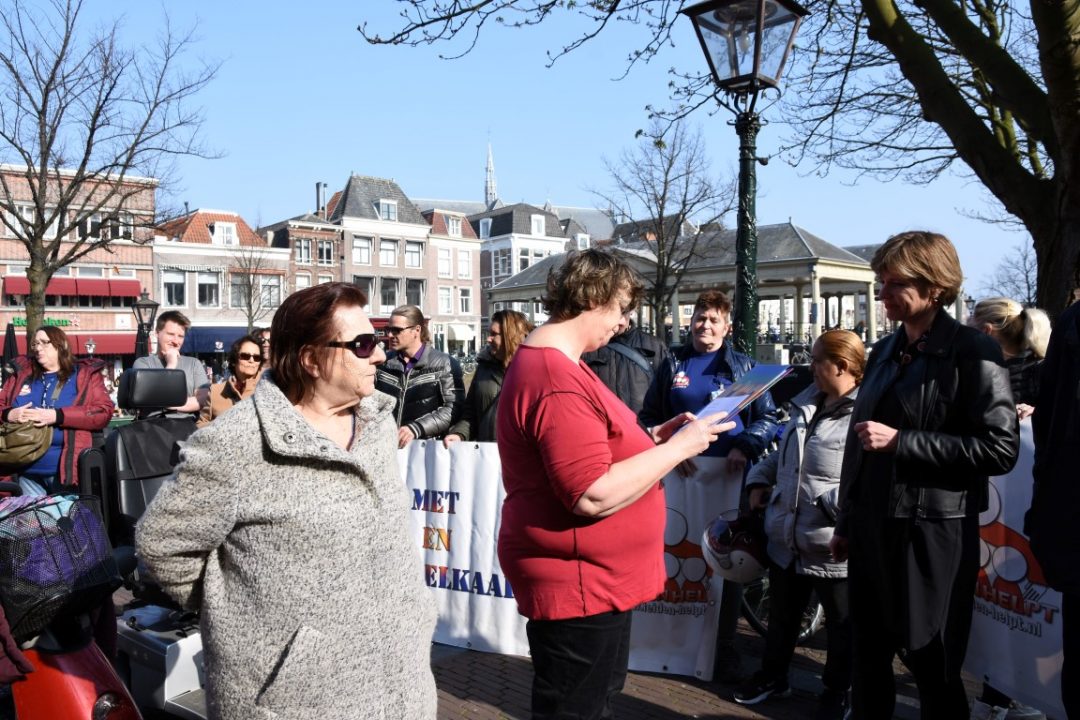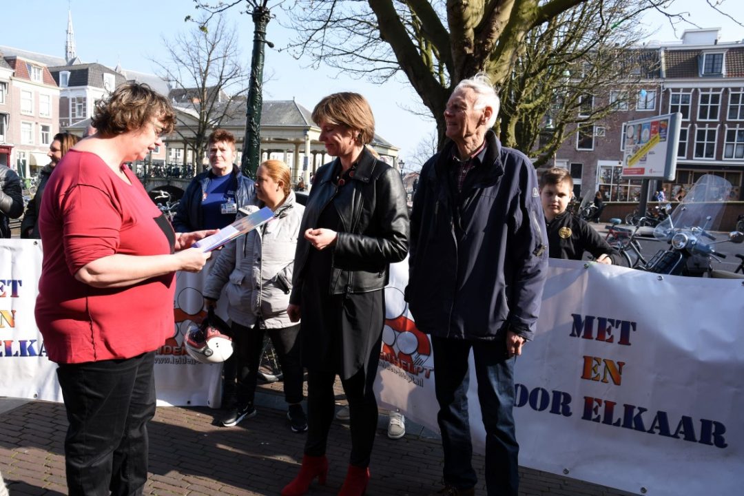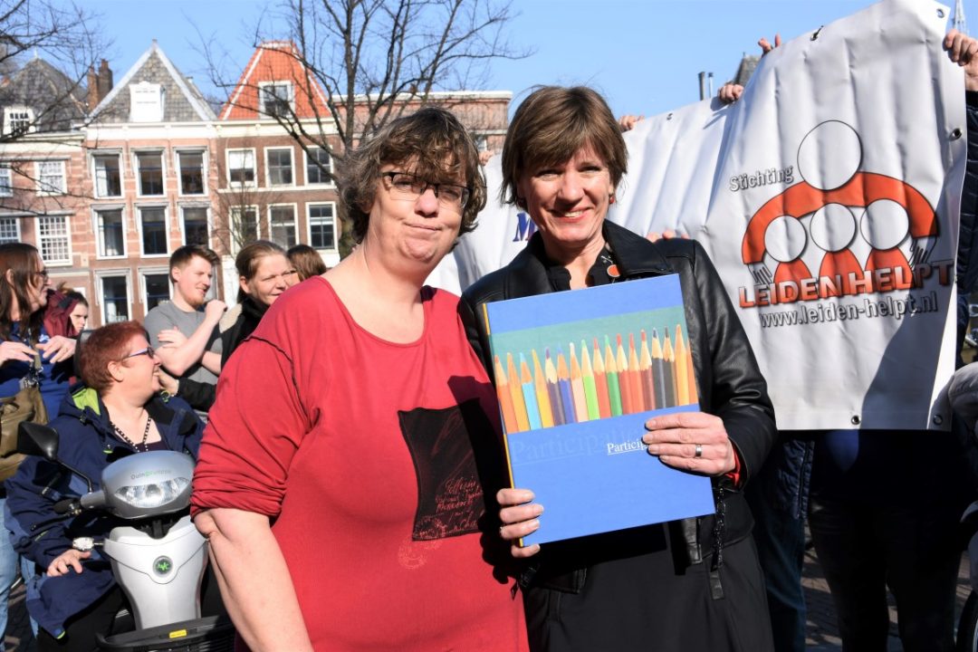 Stichting Leiden Helpt overhandigde wethouder Damen een map met handtekeningen en steunbetuigingen in een ultieme poging de subsidie van de gemeente veilig te kunnen stellen na 1 juli van dit jaar. Wethouder Damen laat zich niet verleiden tot beloftes. Ze blijft met iedereen in gesprek, maar Leiden Helpt zal echt op eigen benen moeten gaan staan.