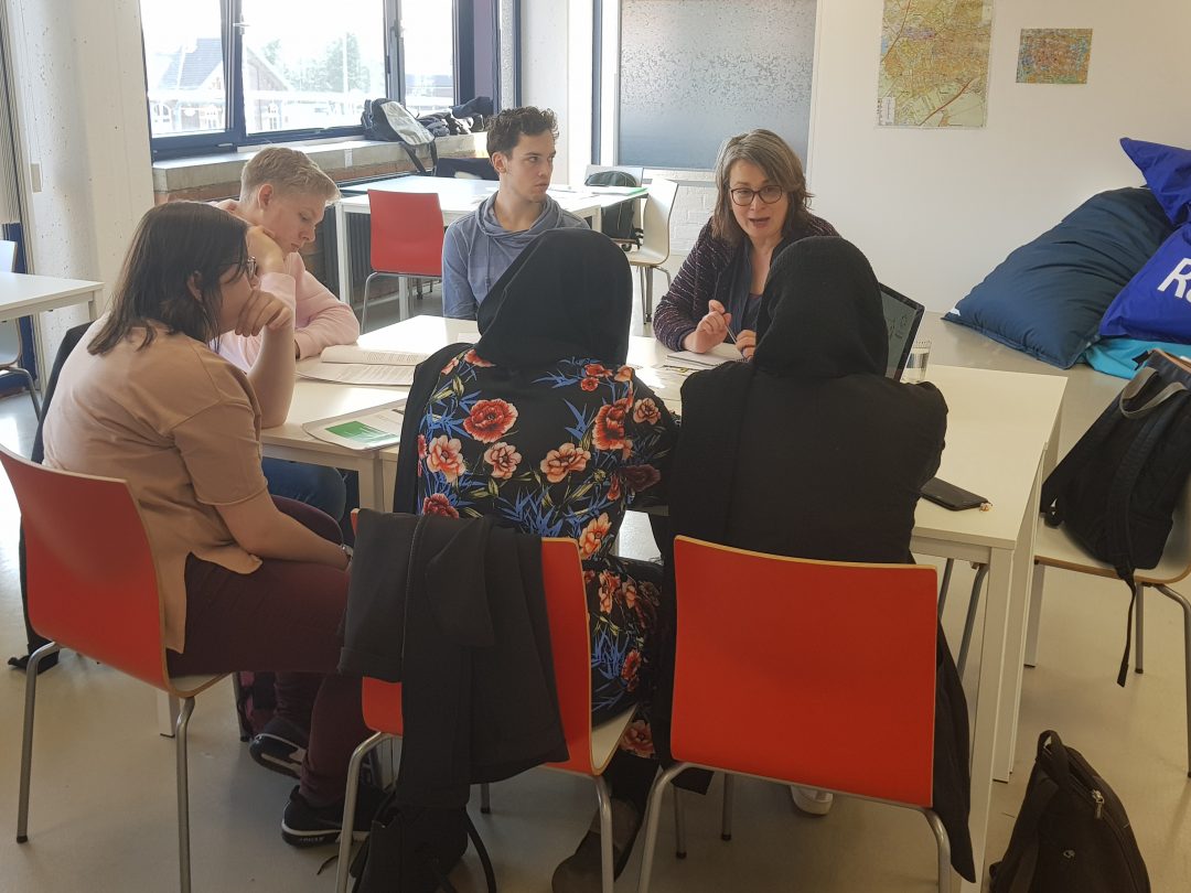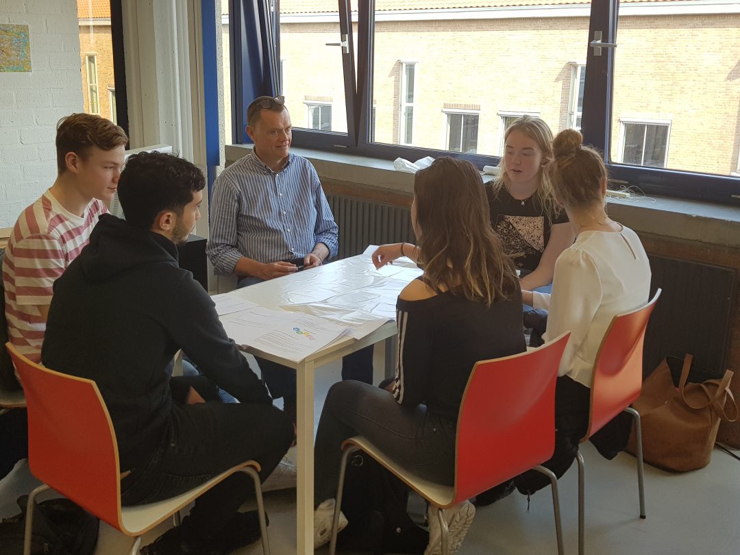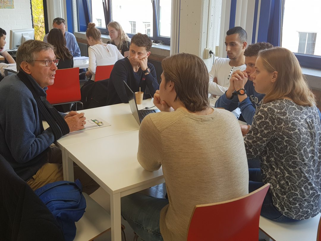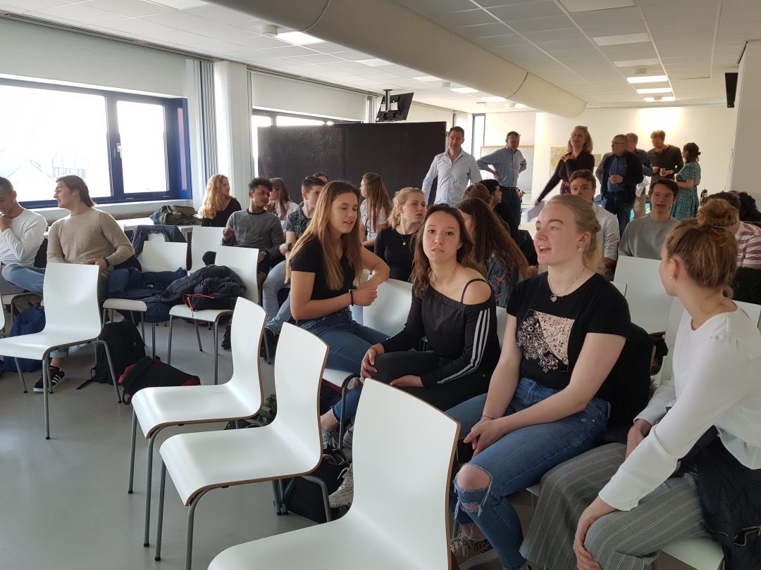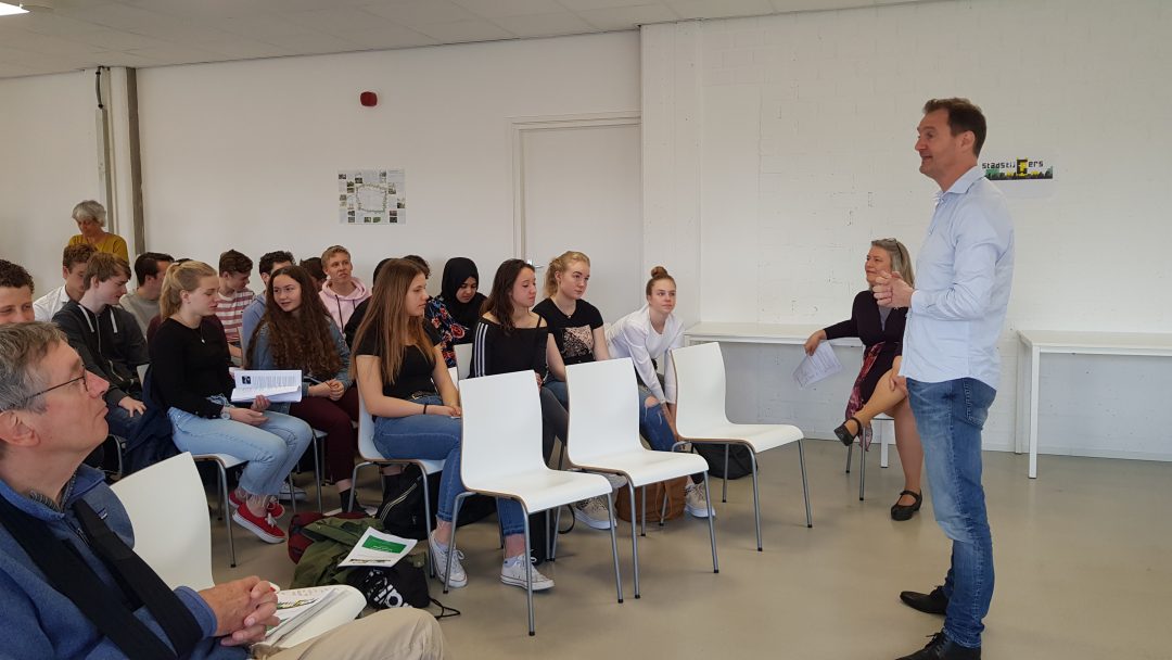 Chris de Waard sprak bij de start van de projectweek met wethouder Martine Leewis en docent Mark Gritter. Woensdag komen de leerlingen zelf aan het woord als de hun eerste resultaten presenteren.