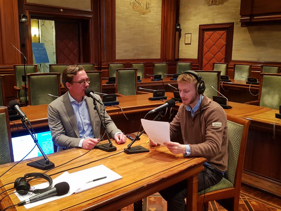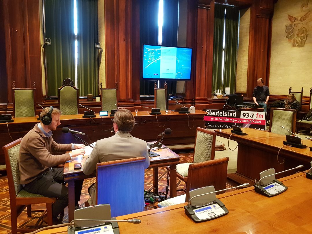 Koen Blankenstijn, persvoorlichter van het Europees Parlement, in Politiek071 vanuit het Stadhuis van Leiden
