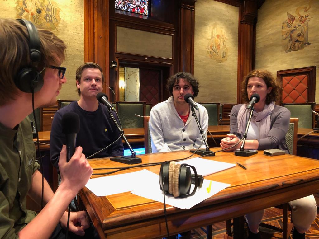 VVD-raadslid uit Teylingen Robin Konings, GroenLinks-raadslid Gebke van Gaal en PvdA-raadslid Martijn Otten in Politiek071 vanuit het Stadhuis van Leiden