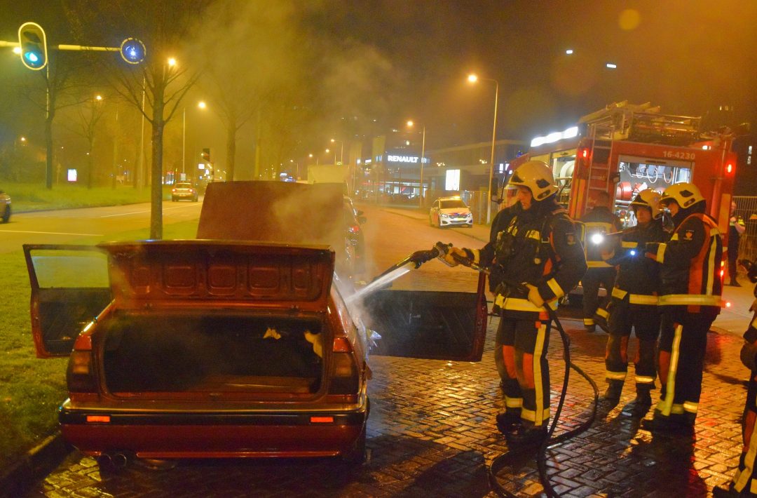 Op de Lammenschansweg in Leiden is aan het einde van de avond een auto tijdens het rijden in brand gevlogen. De bestuurder wist het voertuig te parkeren en kon ongedeerd uitstappen. De brandweer heeft de auto geblust, maar kon niet voorkomen dat de auto volledig is uitgebrand.