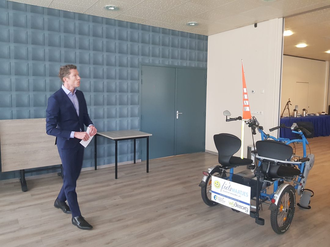 Die derde Zoeterwoudse duofiets komt er binnenkort wel. Mogelijk opnieuw met steun van Zorg en Zekerheid Leiden die al veel duofietsen sponsort in de hele regio. Burgemeester Bloemen daagde Elmar Stoelinga van de regionale ziektekostenverzekeraar daartoe in elk geval wel uit.