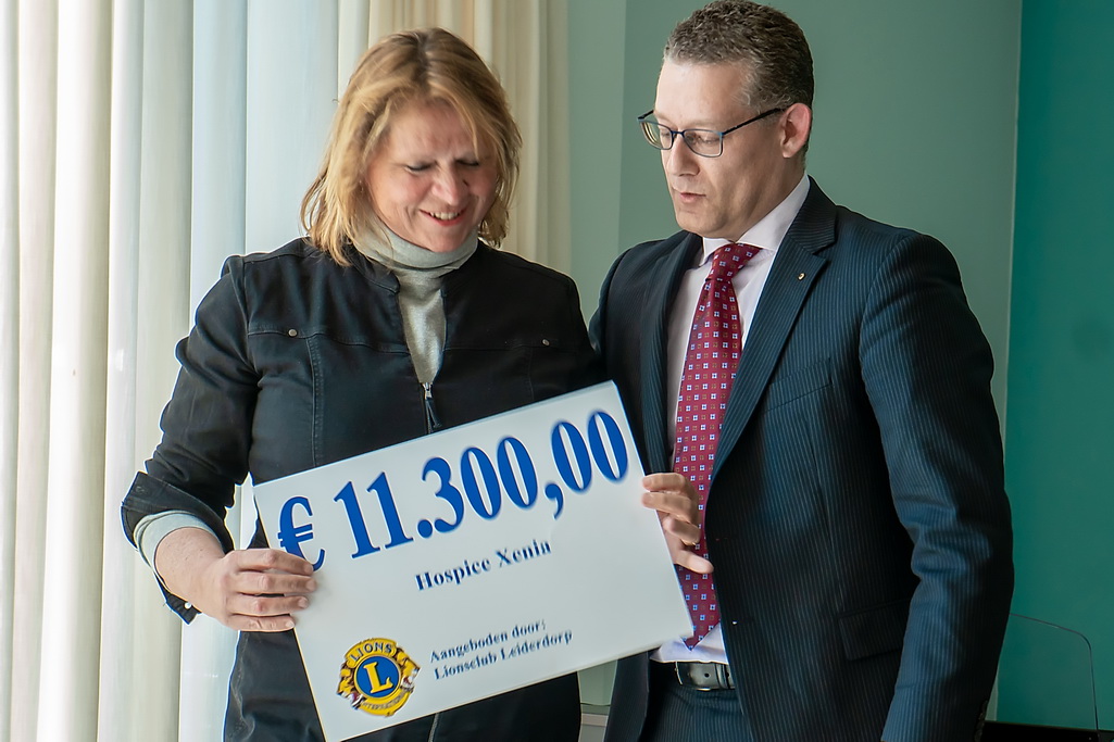In oktober vorig jaar lanceerde de Lions Club Leiderdorp een nieuw snoepje voor het goede doel: Leiderdropjes. De opbrengst van de potjes met winegums en drop is bestemd voor het Leidse jongerenhospice Xenia en gisteren werd een cheque met daarop de opbrengst van de 4.200 potjes overhandigd aan directeur Jaqueline Bouts van Xenia. De 11.300 euro is hard nodig voor het hospice dat jaarlijks een exploitatietekort van zo’n 170.000 euro moet zien te dekken.