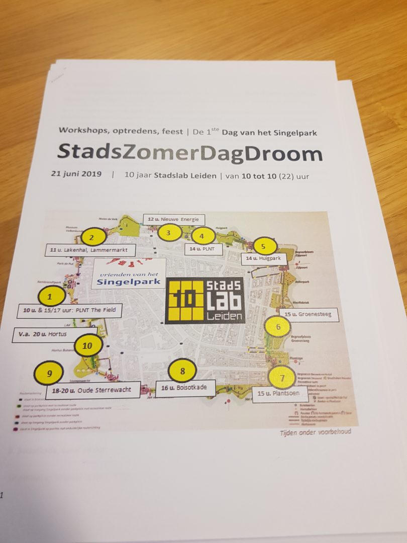 21 juni 2019 moet één groot feest worden in en rond de binnenstad. Dan viert Stadslab Leiden het tienjarig bestaan, maar daarvoor is de samenwerking gezocht met een hele trits andere organisaties. Met Museum de Lakenhal bijvoorbeeld dat in dat weekeinde de heropening viert na de renovatie en uitbreiding, maar ook met de Vrienden van het Singelpark. Het moet leiden tot een Stadszomerdagdroom, bestaande uit activiteiten op tien plekken in het Singelpark.