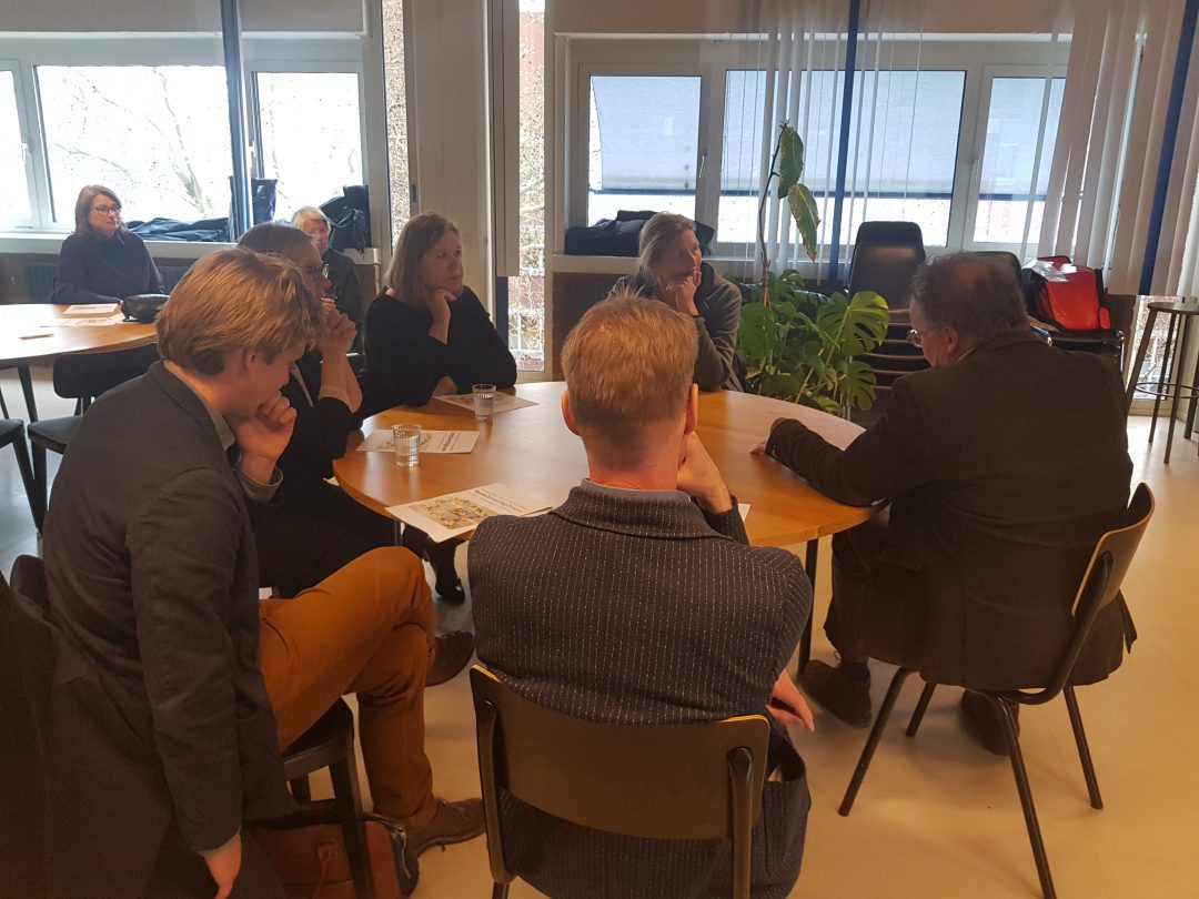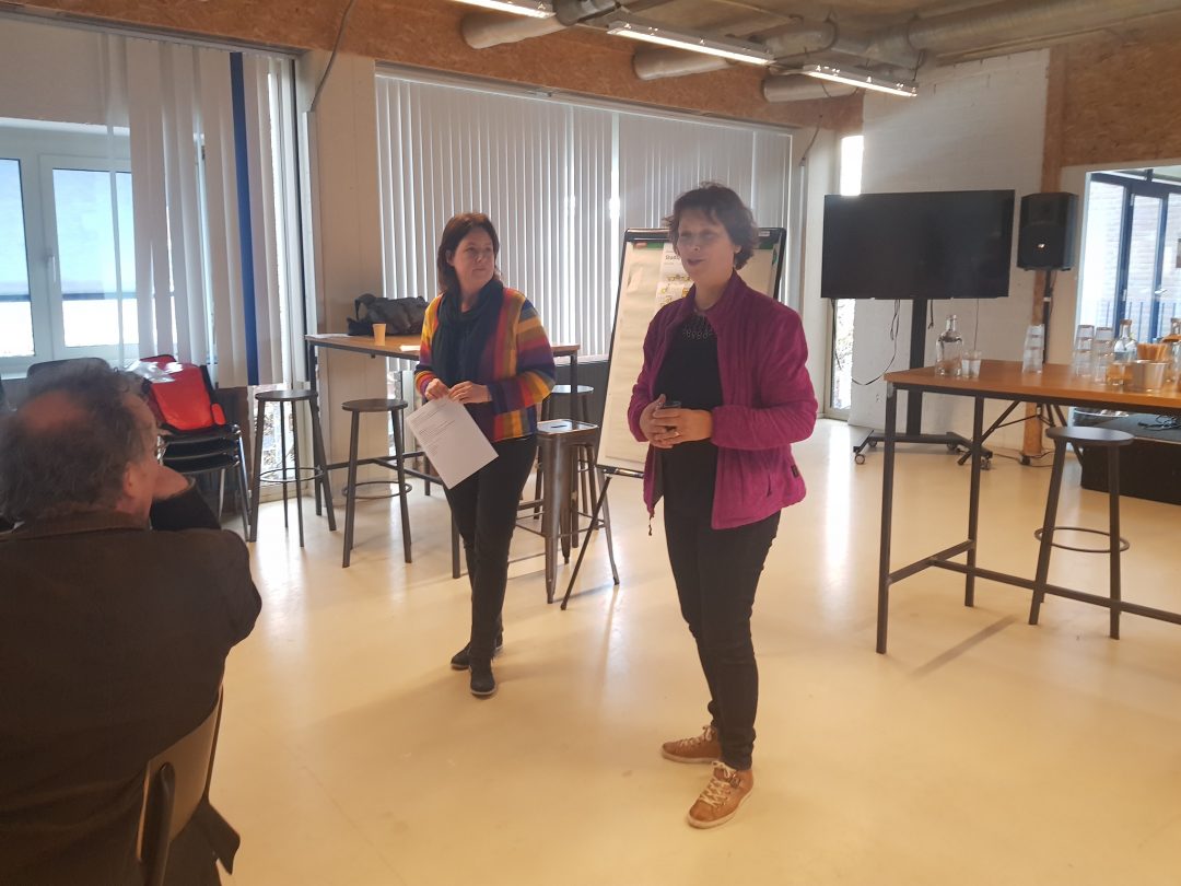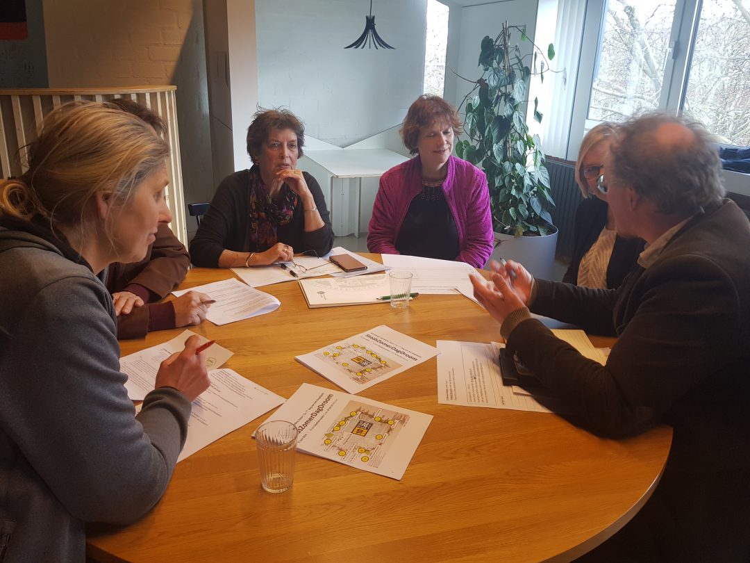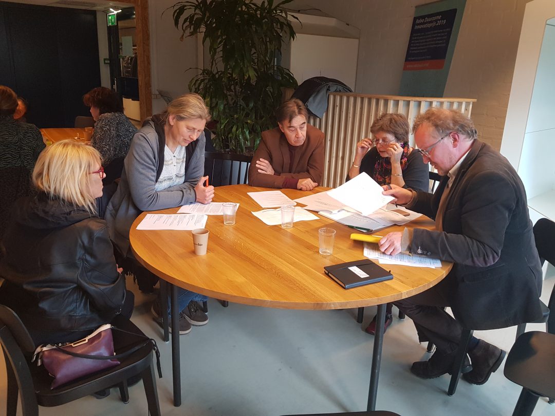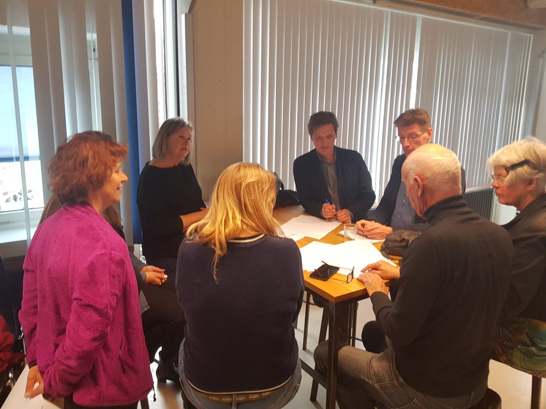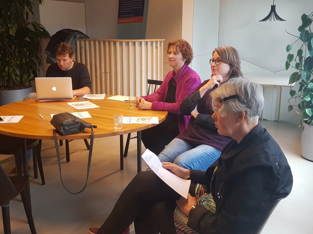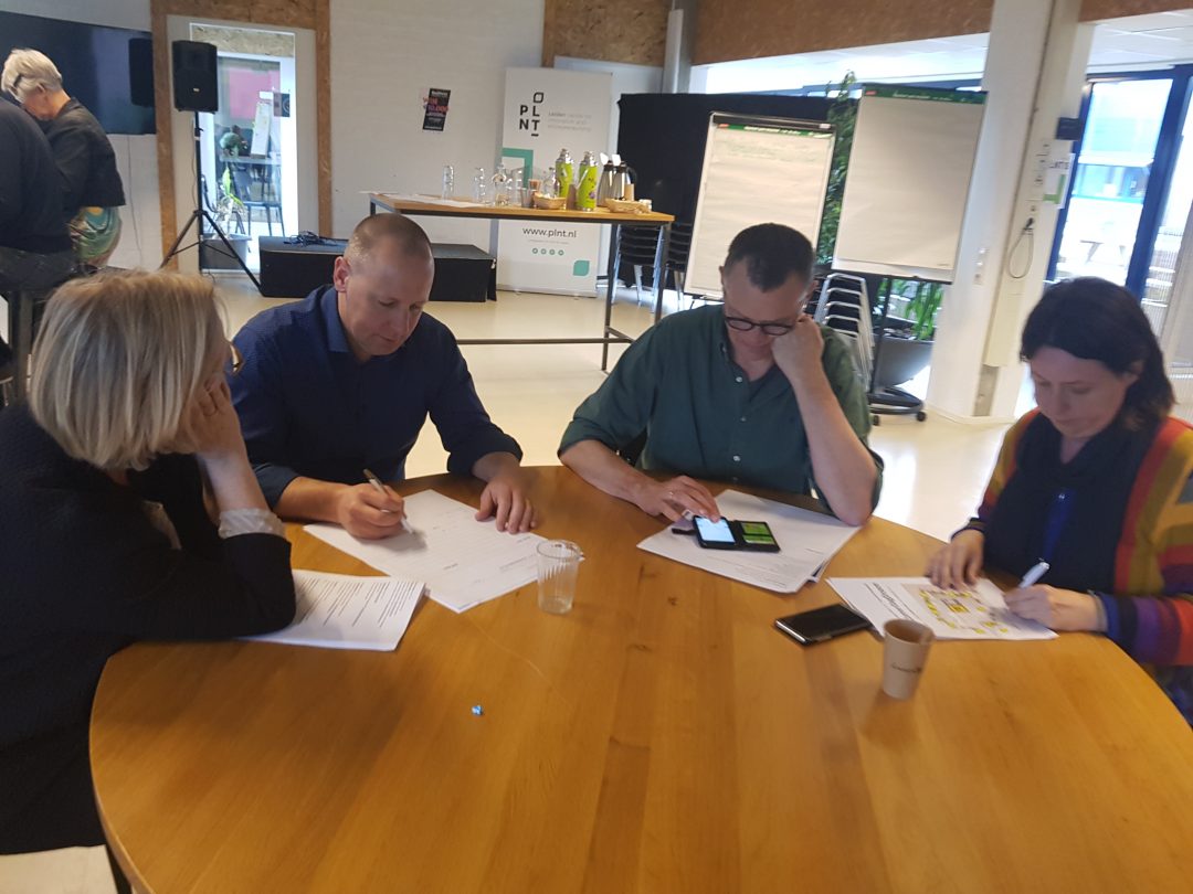 Chris de Waard in gesprek met Gijsbert van Es van Stadslab Leiden en Conny Broeyer van de Vrienden van het Singelpark.