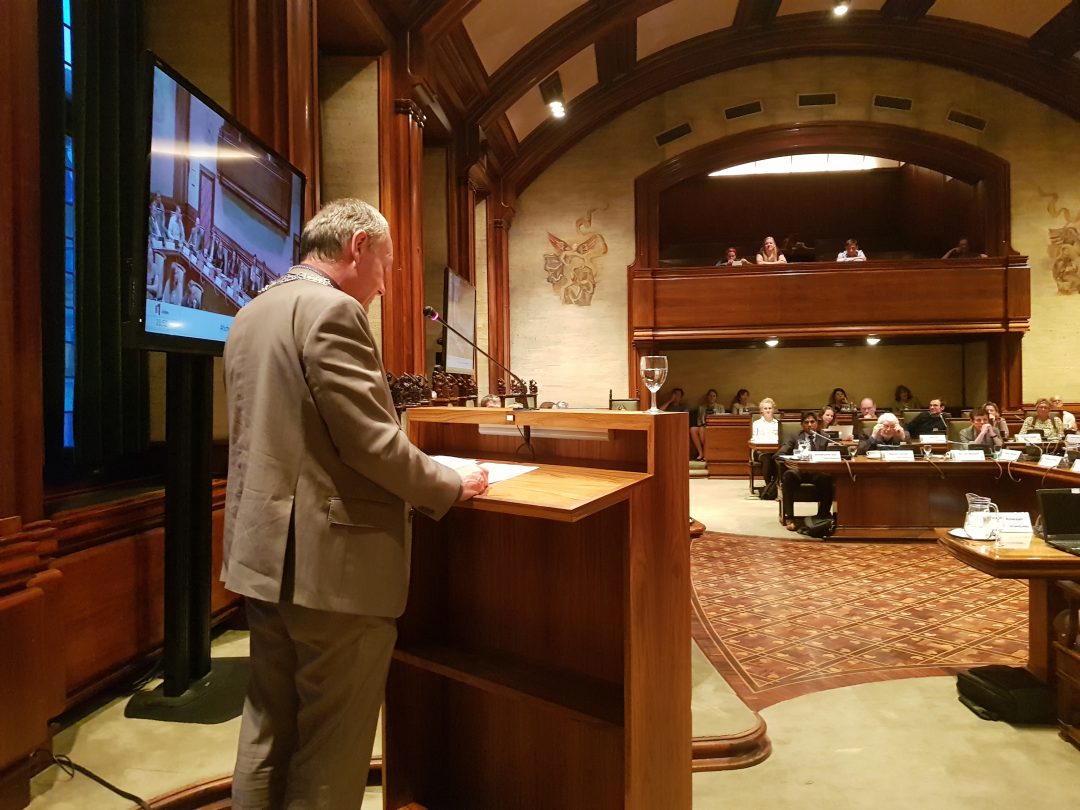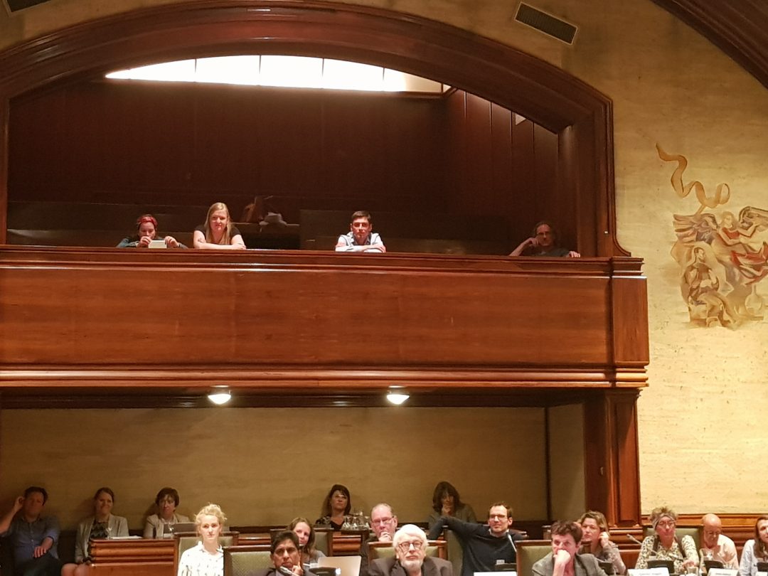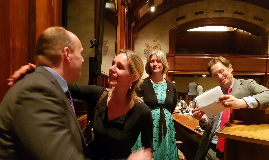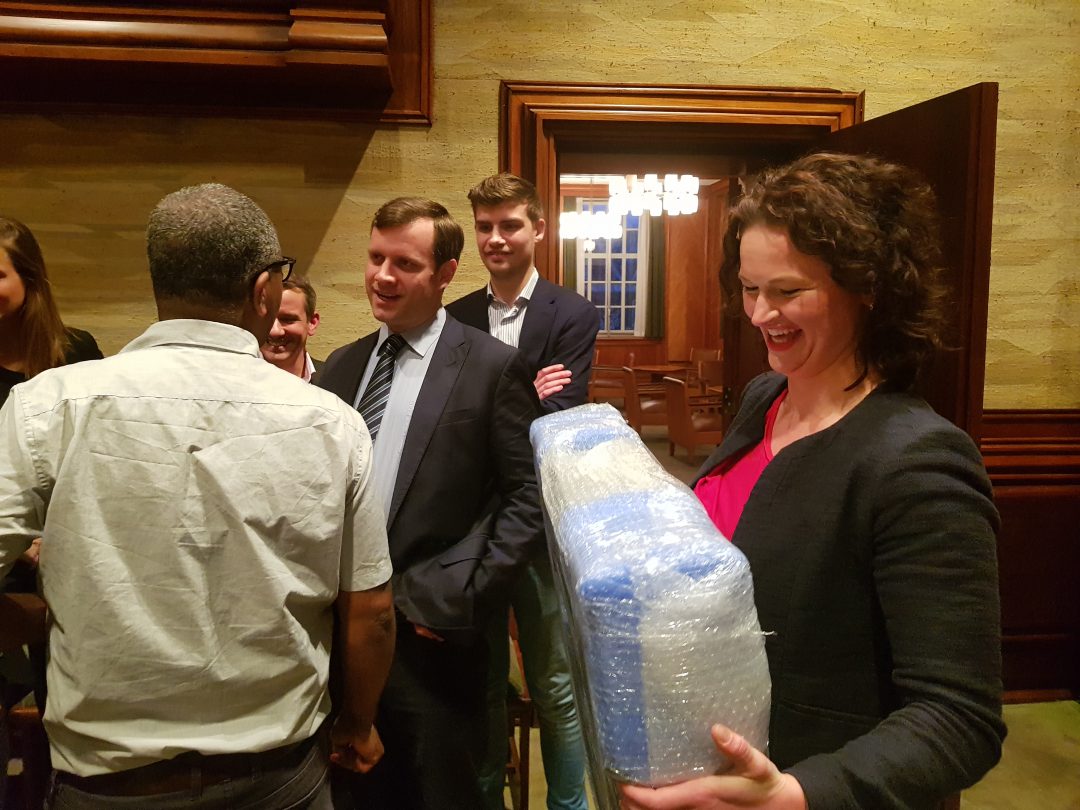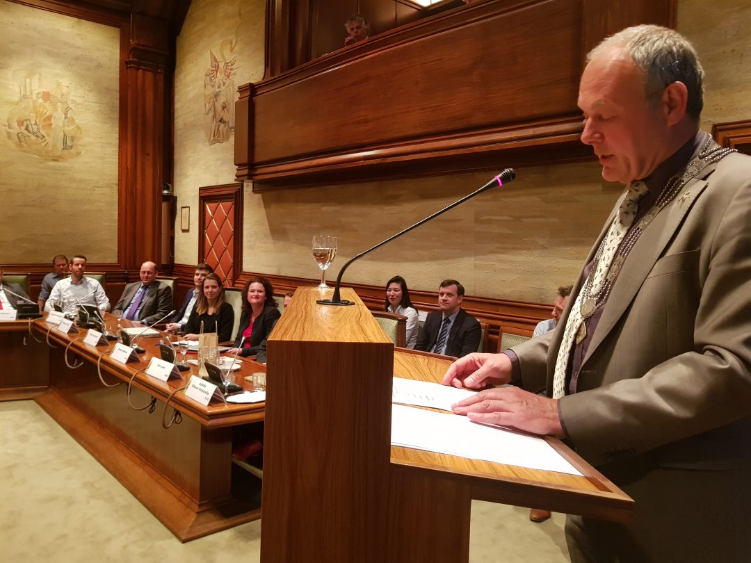 GroenLinks Leiden fractievoorzitter Ashley North sprak als gastverslaggever met de afscheid nemende Frederik Zevenbergen.