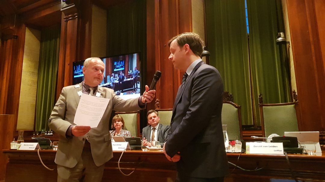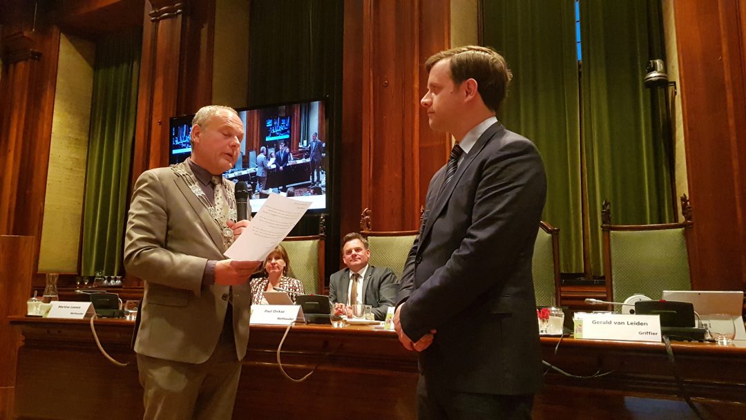 Nadat afscheid was genomen van de nestor van de Leidse raad, vanaf nu is dat GroenLinks-raadslid Walter van Peijpe, werd de opvolger van Zevenbergen beëdigd. Dat is Maarten Dirkse die in het verleden al een tijd duoraadslid was voor de VVD Leiden en ook al enkele keren tijdelijk raadslid is geweest. De laatste keer vorig jaar als vervanger van Maurice Hoogeveen die de raad moest verlaten vanwege een verhuizing naar Den Haag. Dat was echter enkele weken voor de gemeenteraadsverkiezingen, zodat het raadslidmaatschap van Dirkse toen precies één vergadering duurde.