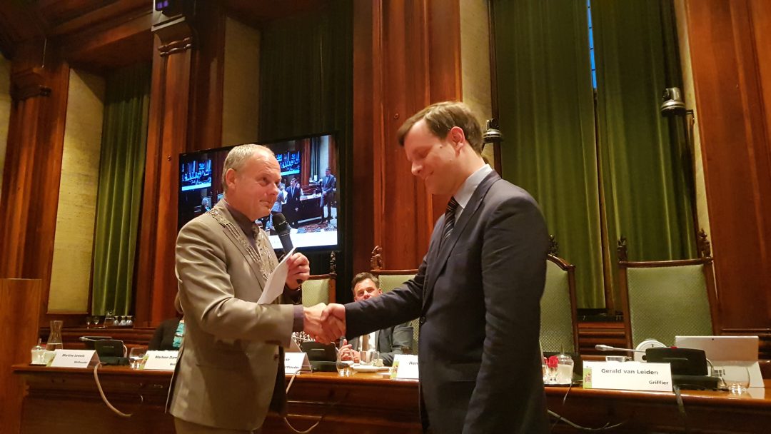 Na 17 jaar heeft de Leidse gemeenteraad gisteravond afscheid genomen van VVD-raadslid Frederik Zevenbergen. ‘Zeef’ zoals hij in de regel genoemd wordt, is op 20 maart verkozen in Provinciale Staten van Zuid-Holland en verlaat daarom de gemeentepolitiek. Bij het vertrek na zo’n lange periode als raadslid hoort eigenlijk een koninklijke onderscheiding. Toch ging dat lintje aan Zevenbergen voorbij. Burgemeester Lenferink: “U stopt namelijk niet als volksvertegenwoordiger en dat is een voorwaarde”.
