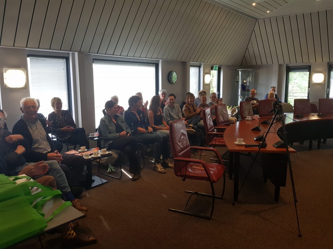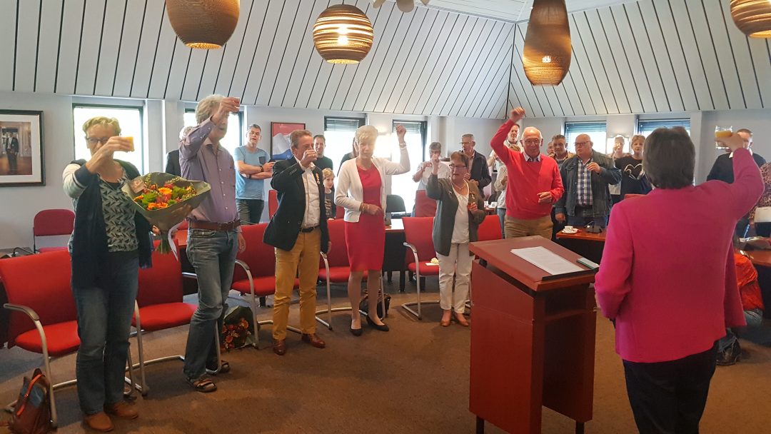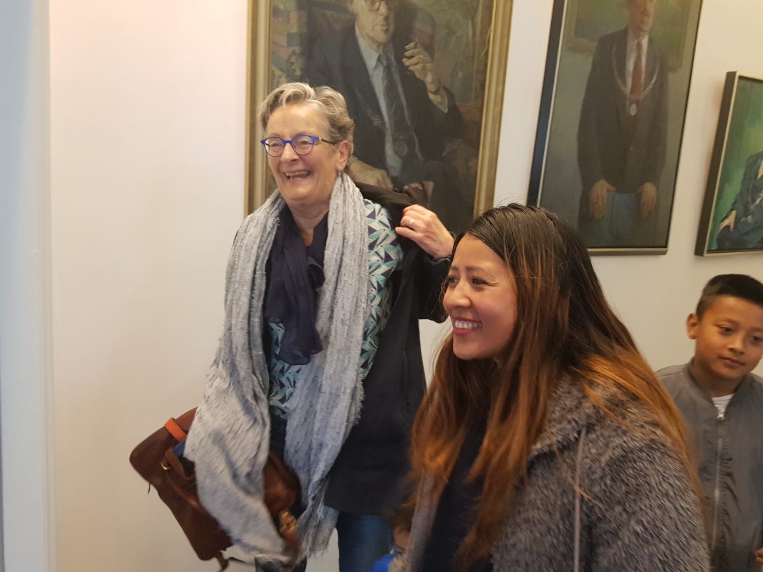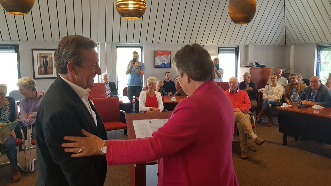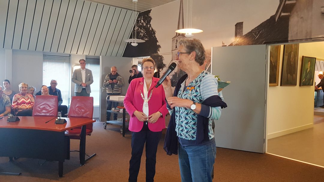 Chris de Waard was bij de plechtige bijeenkomst en sprak na afloop met Nel Turk, Jan Matze en Joke van Haastert en ook met burgemeester Liesbeth Bloemen.
