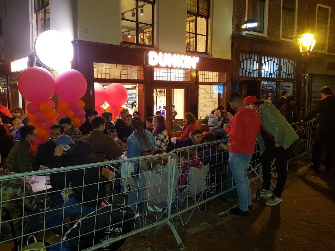 Deze vrijdag opent de Leidse vestiging van Dunkin’ op de hoek van de Haarlemmerstraat en de Stille Mare. Recht tegenover de Coelikerk. Het woordje donut heeft de keten dan wel uit de naam geschrapt, het is wel waar de ruim honderd ‘kampeerders’ voor komen. Als openingsactie krijgen de eerste honderd klanten namelijk een jaar lang elke week zes gratis donuts. En daarvoor willen de aanwezigen wel een nachtje doorhalen.