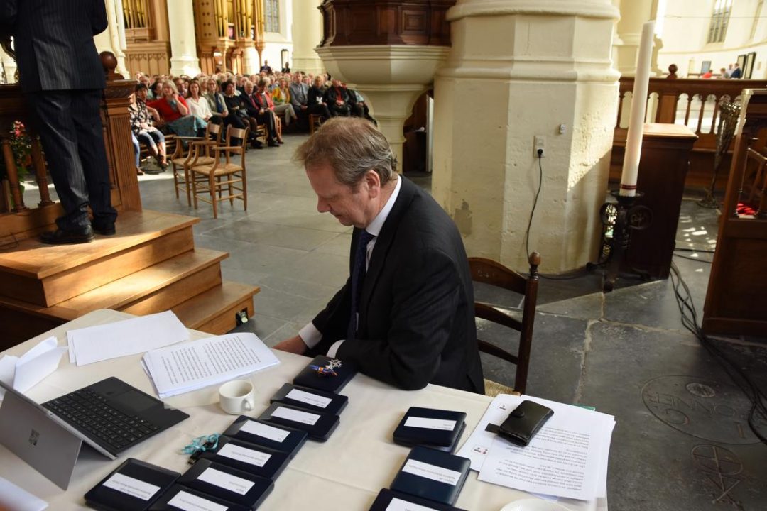 Vanmorgen zijn in Leiden maar liefst twintig Leidenaren geëerd met een koninklijke onderscheiding. Achttien inwoners kregen de onderscheiding uitgereikt in de Hooglandse Kerk uit handen van burgemeester Lenferink. Eén inwoner (Martha Roggenkamp) kreeg de onderscheiding uitgereikt in Groningen, een ander (Heleen Murre- van den Berg) in Nijmegen.