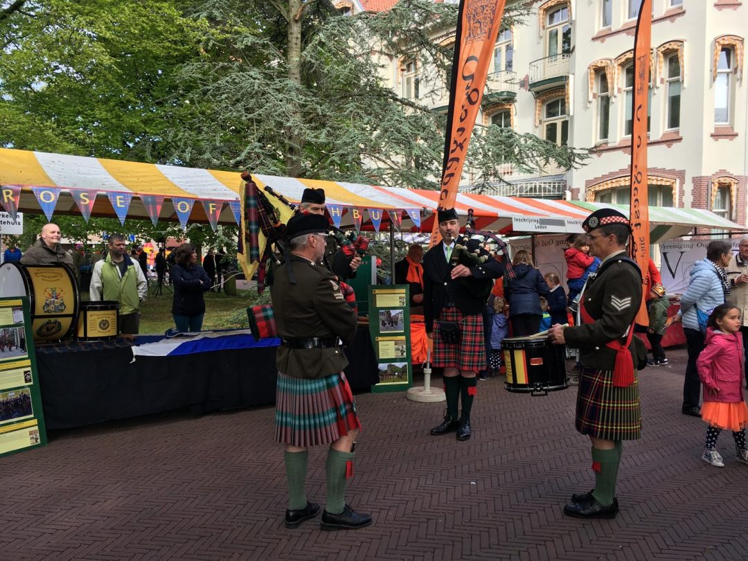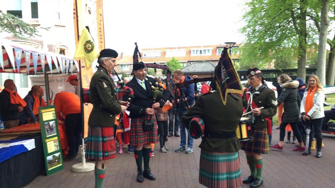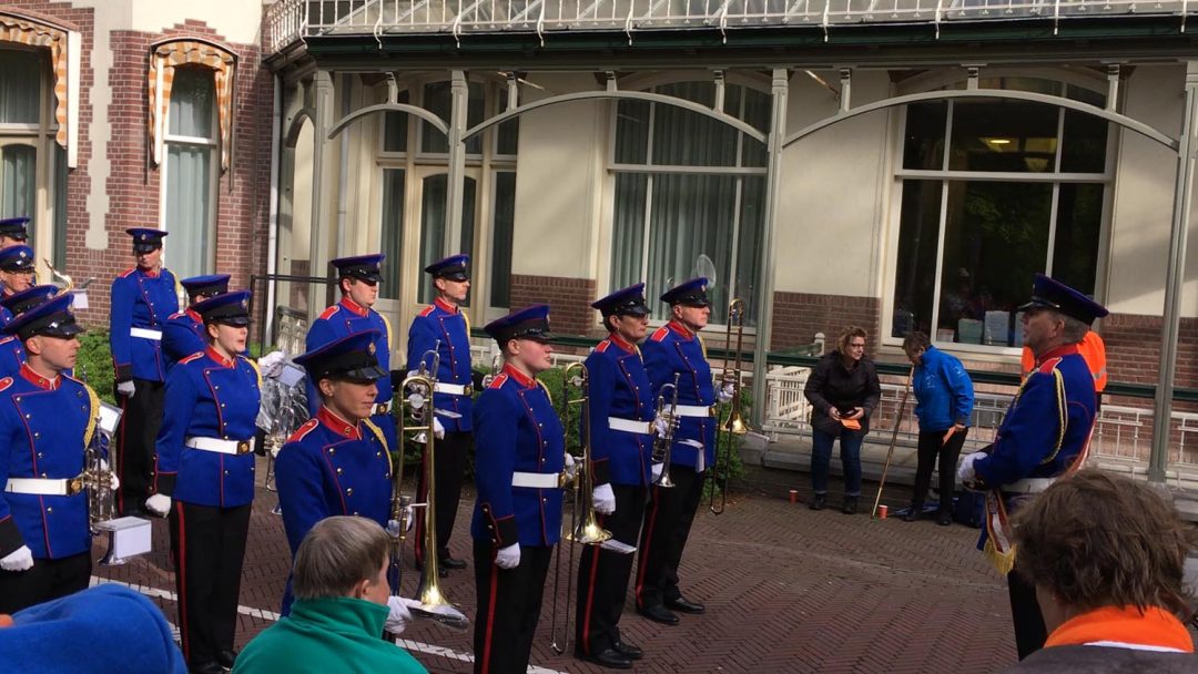 De zon kwam precies op tijd achter de wolken vandaan om Koningsdag in Oegstgeest feestelijk te beginnen. Traditiegetrouw gebeurde dat met de aubade bij het gemeentehuis, waar scoutinggroep Shawano’s de vlag hees, burgemeester Emile Jaensch de gedecoreerden in het zonnetje zette en de Oranjevereniging de kinderspelen opende. Dat laatste gebeurde dit jaar voor het eerst door Linda Bronsgeest, de nieuwe voorzitter.