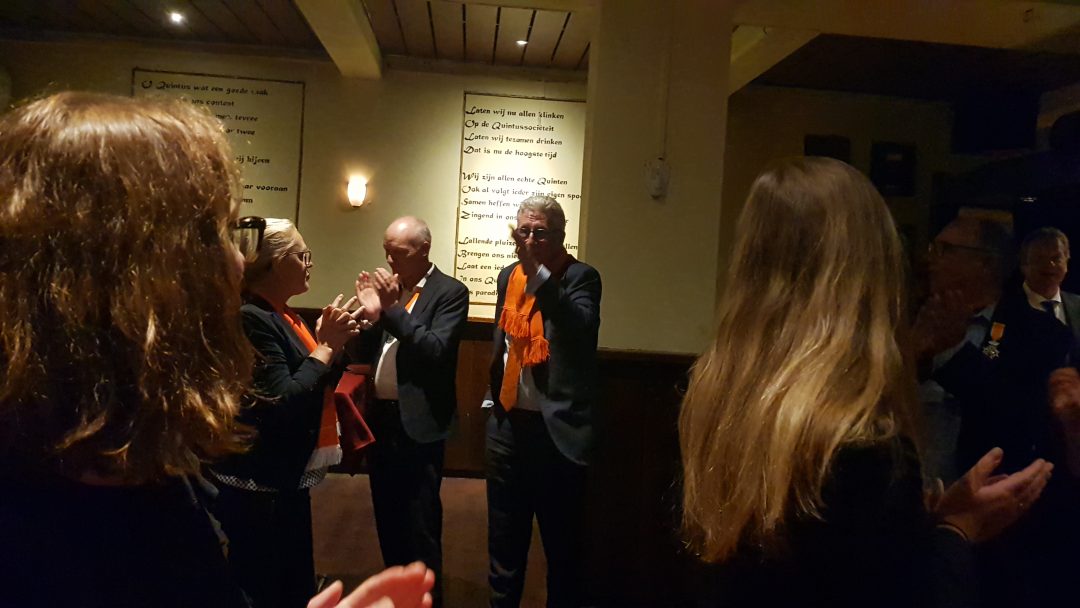 Vrijdagmiddag werd Koningsdag al een beetje afgetapt tijdens een ‘Oranjeborrel’ bij Quintus waarbij onder andere de dragers van een lintje waren uitgenodigd.