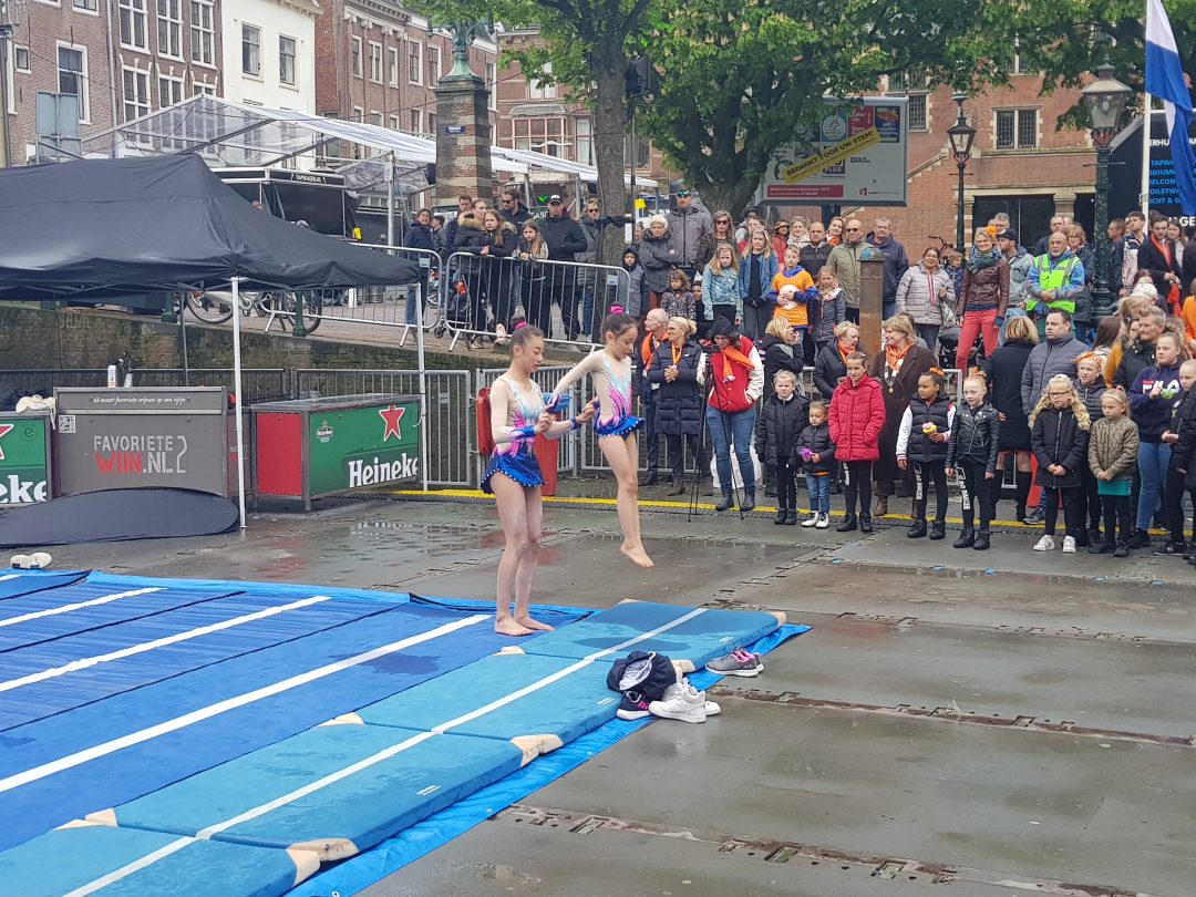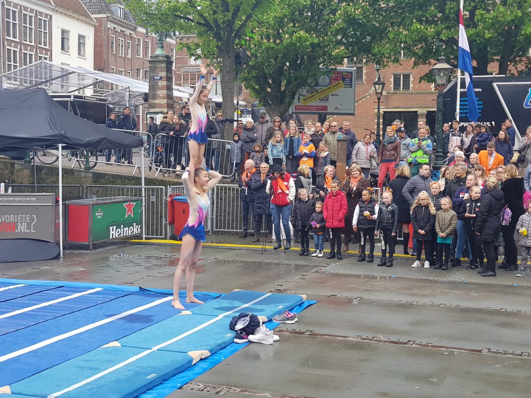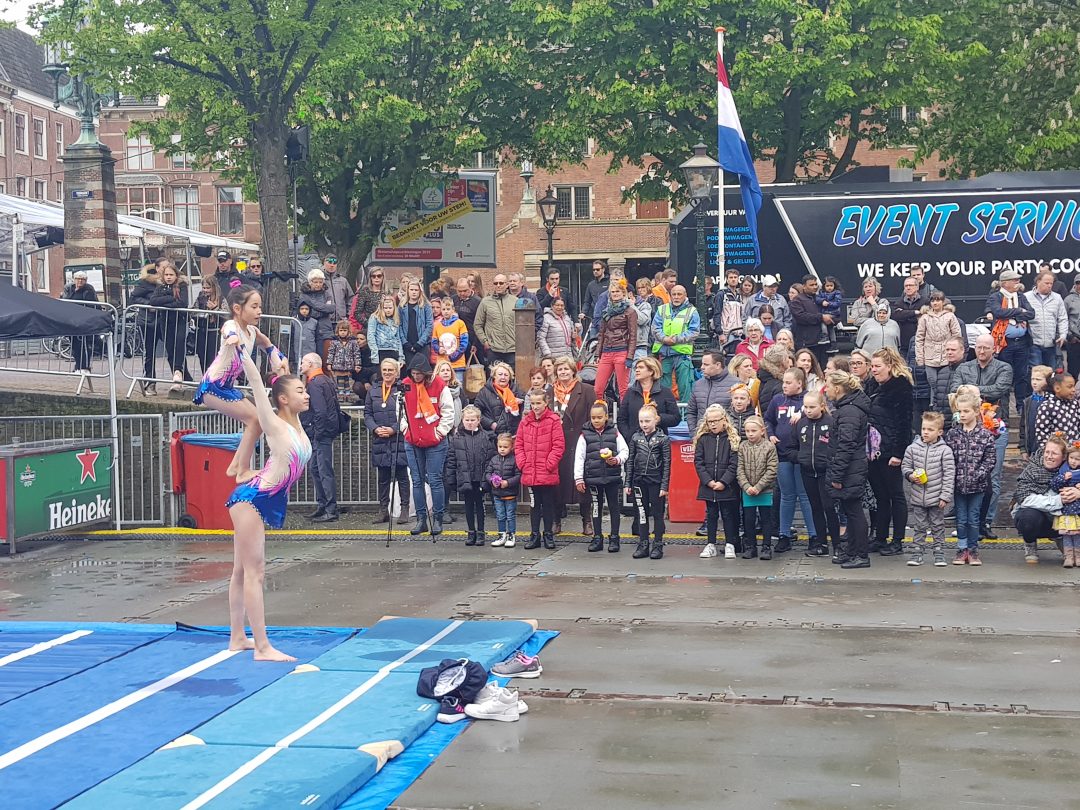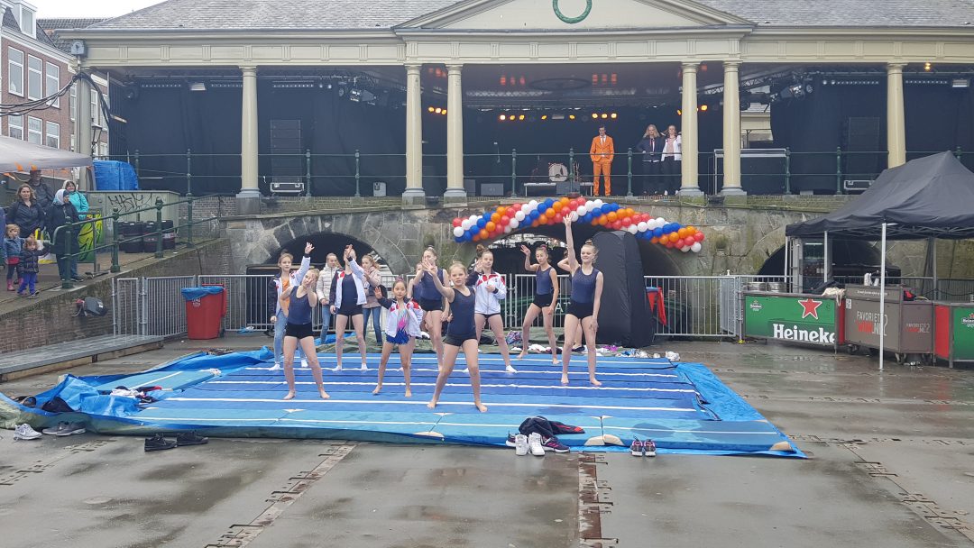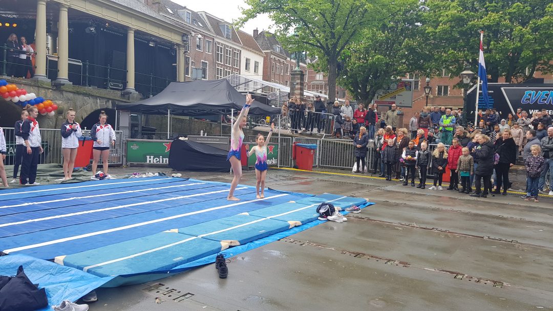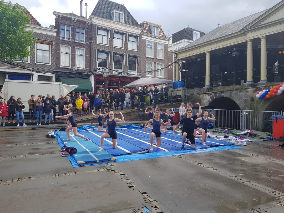 Om 11.45 uur werd Koningsdag door locoburgemeester Yvonne van Delft officieel geopend op de pontons bij de Nieuwe Rijn. Gymsport Leiden luisterde de opening op met spectaculaire demonstraties.