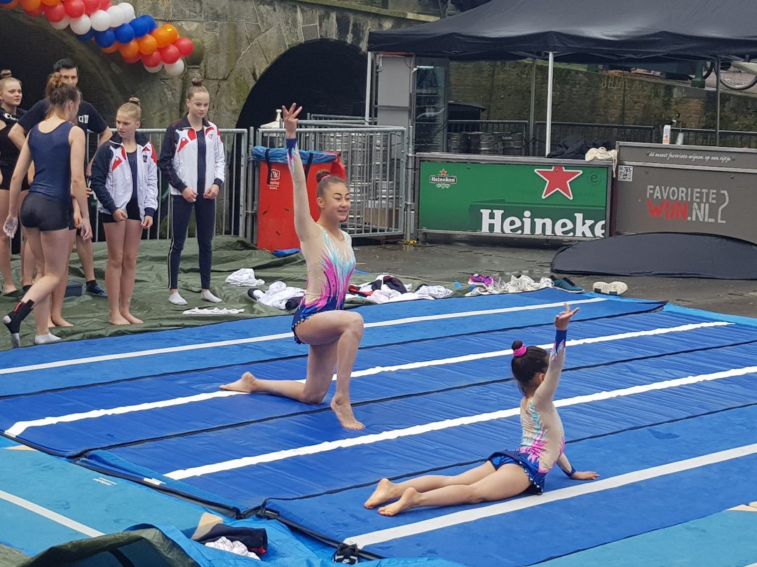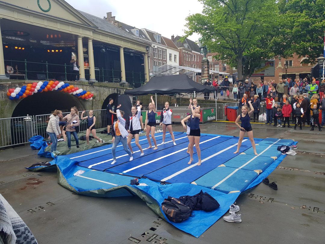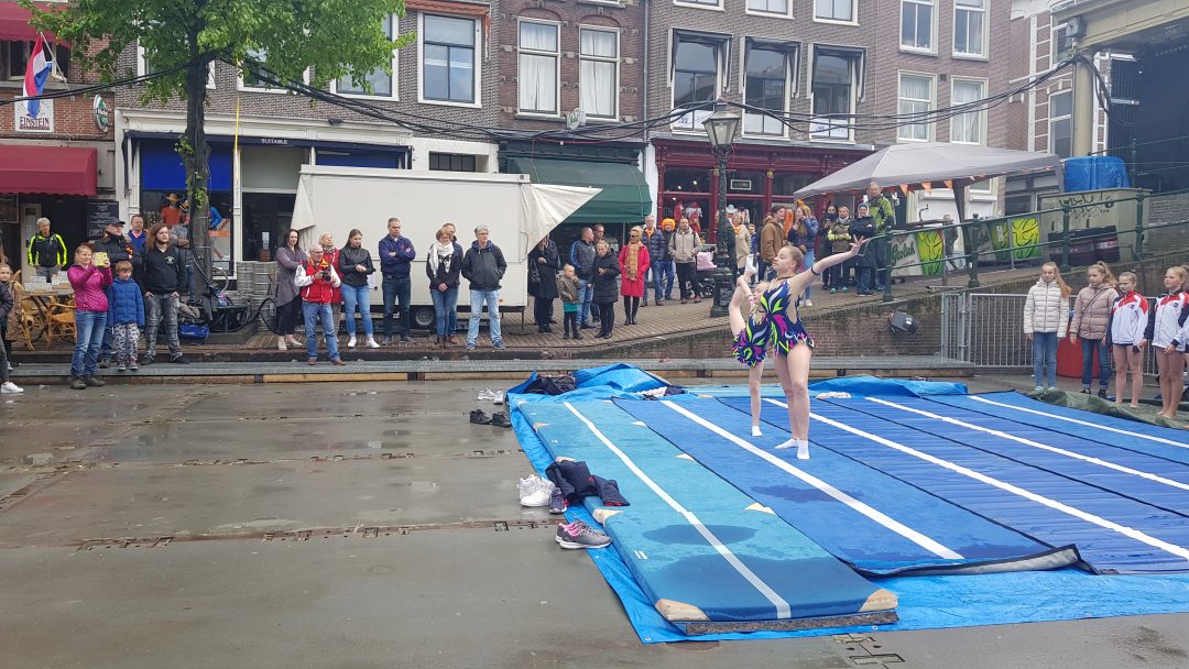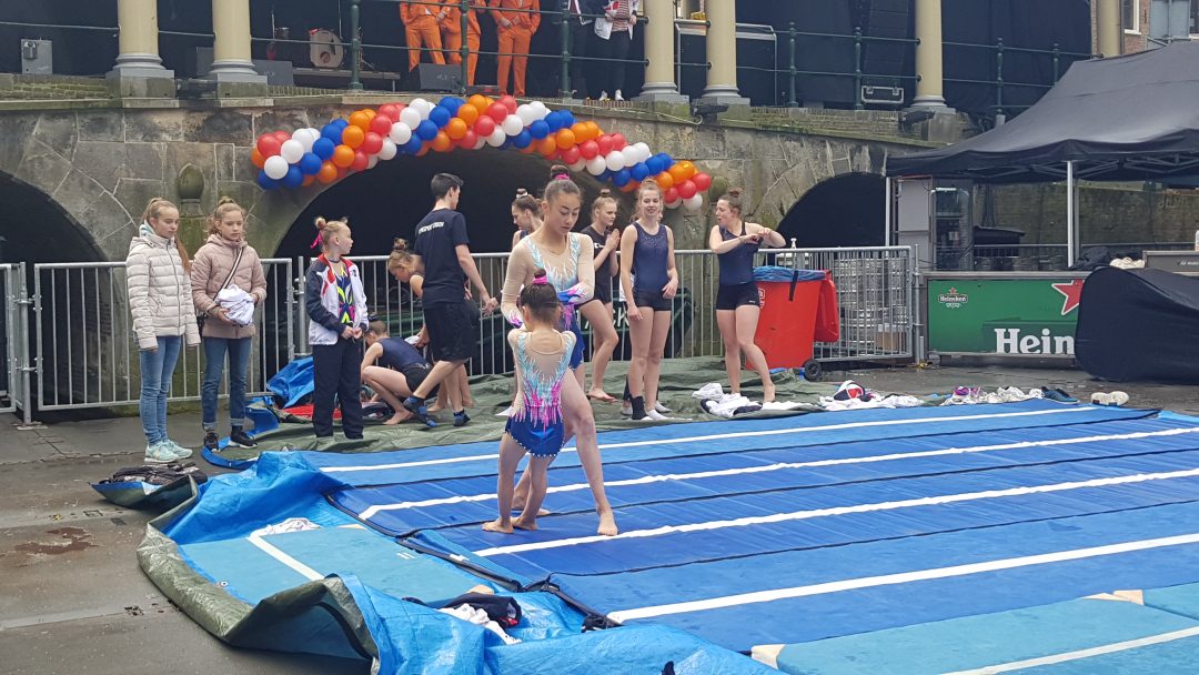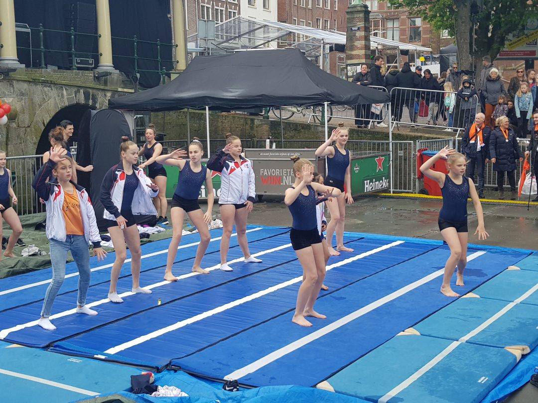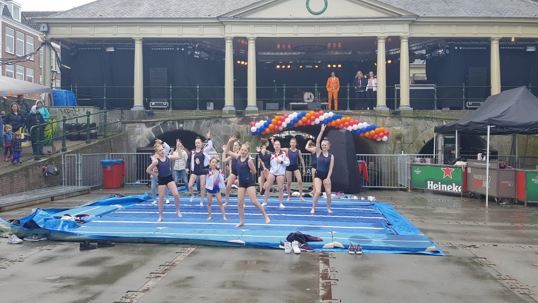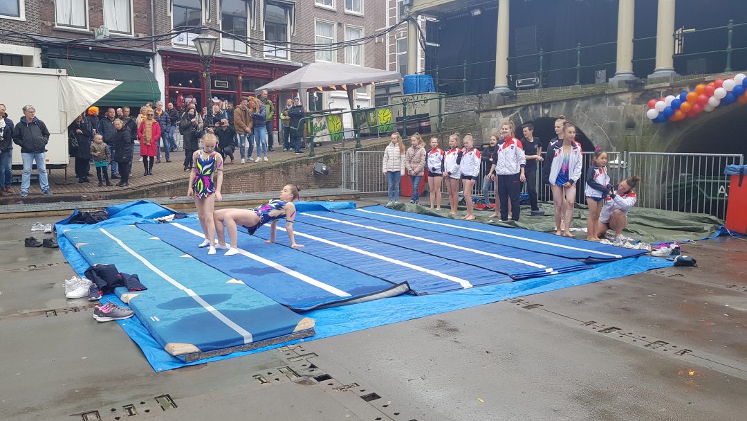 Om 11.45 uur werd Koningsdag door locoburgemeester Yvonne van Delft officieel geopend op de pontons bij de Nieuwe Rijn. Gymsport Leiden luisterde de opening op met spectaculaire demonstraties.