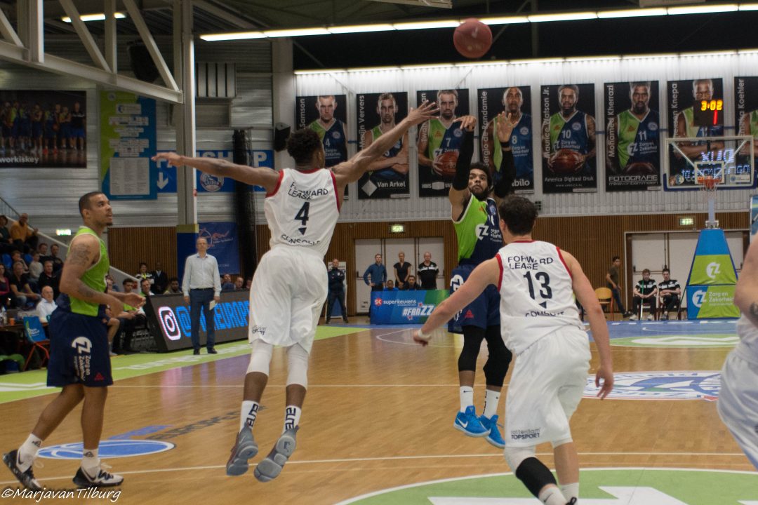 Uiteindelijk liep het verschil nog hoog op: 96-72. Niet dat een doelsaldo van belang is, want het staat nu 1-0 voor Zorg en Zekerheid Leiden. Komende donderdag gaat het circus verder in Rotterdam.