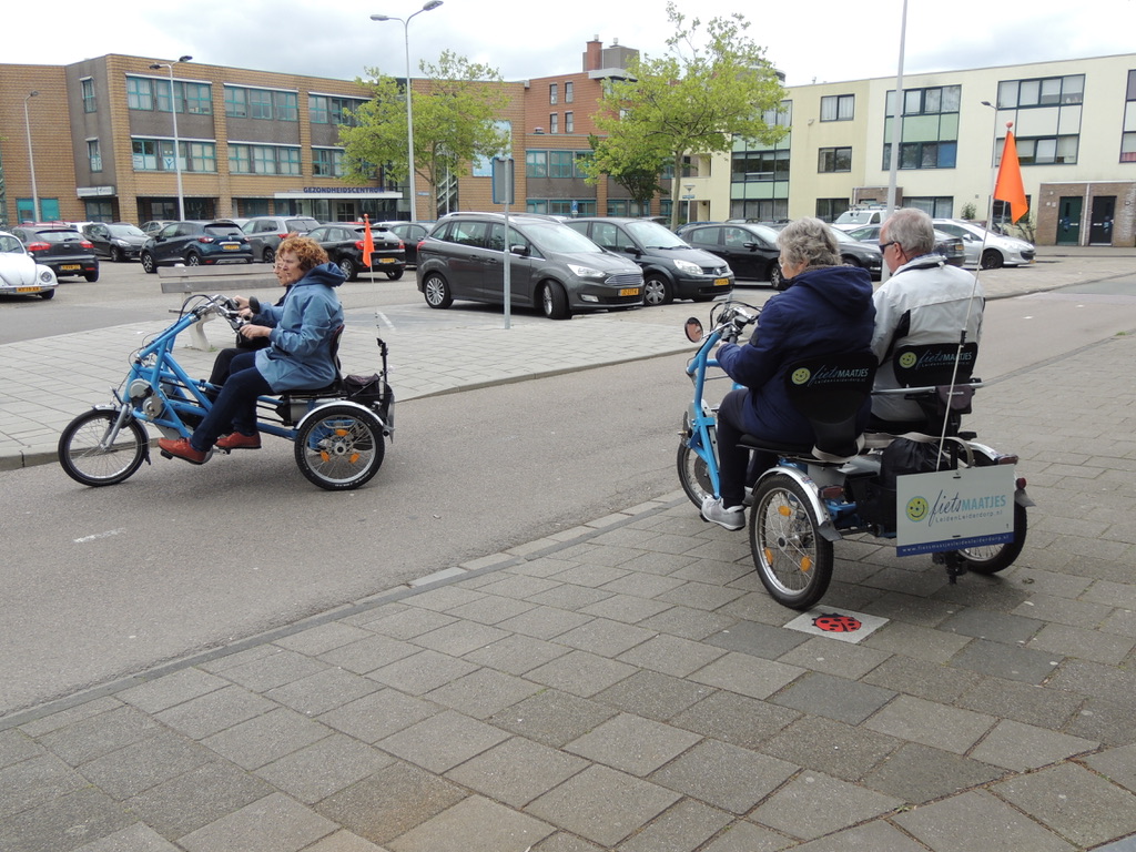 Het duofietsen is een groot succes, ondanks de paar spetters regen die er vallen. Het op- en afstappen op de fietsen gaat soepel dankzij het feit dat de zadels kunnen draaien. Wie wil kan zich diezelfde middag nog opgeven. Carla Kramer van Fietsmaatjes heeft er zichtbaar lol in. “Het is voor iedereen fijn om buiten te zijn en de wind door je haren te voelen.” Kramer vertelt dat ze nog wel wat extra vrijwilligers kunnen gebruiken om alle 250 gasten van Fietsmaatjes rond te rijden. Voor meer informatie kun je terecht op de website van Fietsmaatjes Leiden-Leiderdorp.