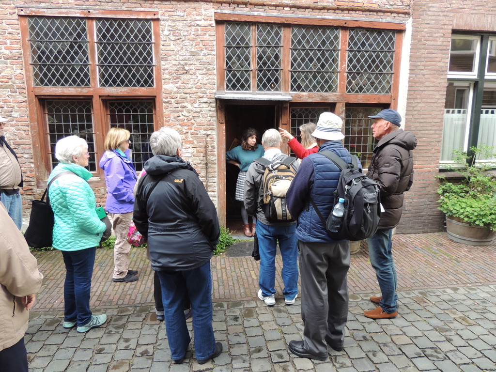 Na het bezoek aan het Pelgrimsmuseum in de Beschuitsteeg is Soule Chapman zeer onder de indruk van het huis dat al stamt uit de veertiende eeuw en waarvan het interieur zeventiende-eeuws. Zoals de huizen waren in de tijd dat de pelgrims in Leiden woonden.Het is niet echt een pelgrimshuis, want hier woonde ooit de priester van de Hooglandse kerk toen dat nog een katholieke kerk was en ook Soule Chapman denkt niet dat er een pelgrim ooit een voet in huis heeft gezet.