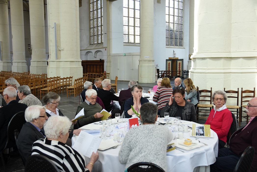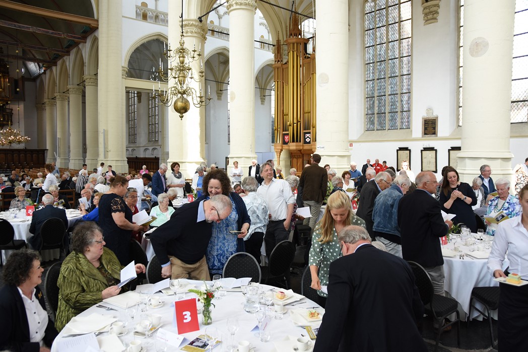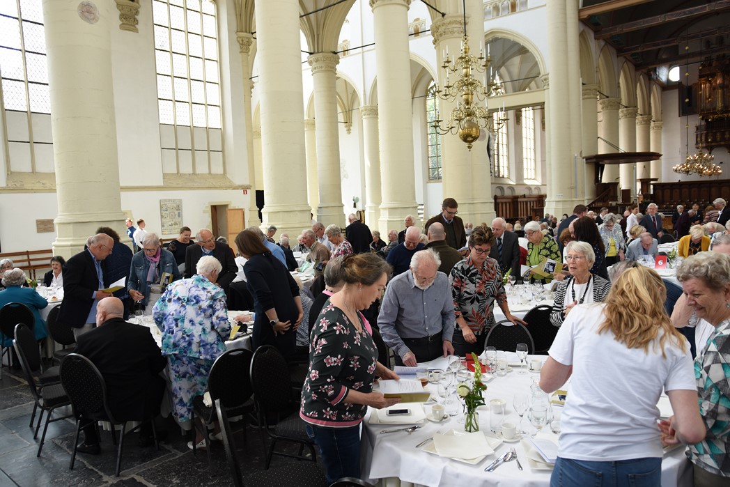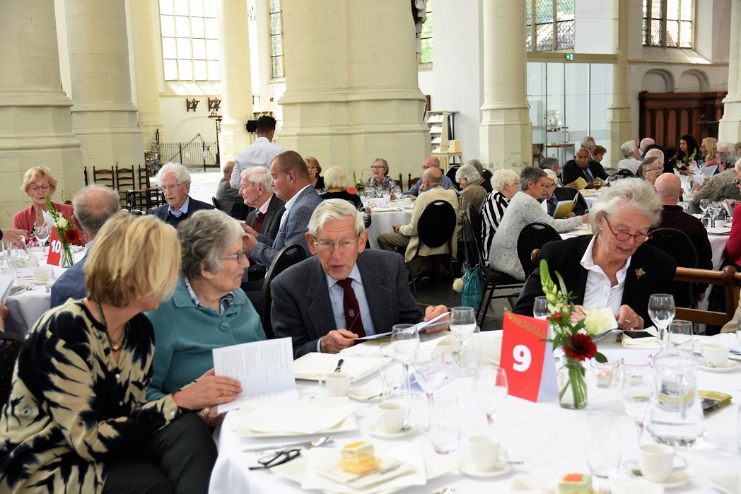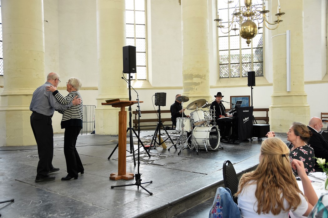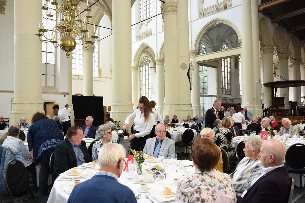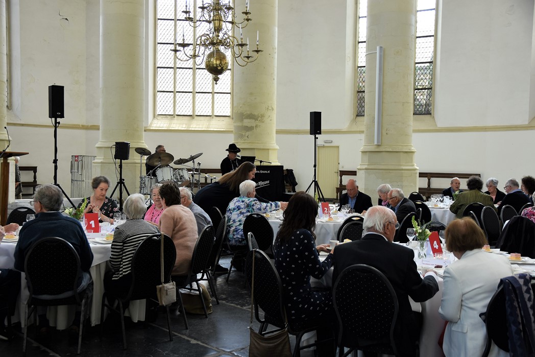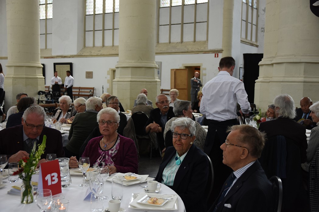 Maandagmiddag was in de Hooglandsekerk de jaarlijkse bruidsparenmiddag. Leidse bruidsparen die 60-, 65- of 70 jaar getrouwd zijn waren uitgenodigd voor een gezellige lunch.Burgemeester Henri Lenferink prees de echtparen voor hun doorzettingsvermogen. Er waren 51 bruidsparen naar de lunch gekomen waarvan zelfs 1 echtpaar dat 70 jaar getrouwd is. Normaal mag je eens in de 5 jaar komen, maar als u 70 of meer jaren getrouwd bent dan bent u elk jaar welkom vertelde de burgemeester. Na de toespraak en het zingen van het Leids Volkslied, brachten de Rijnsons de stemming er direct goed in en al snel zongen de bruidsparen alle nummers mee terwijl de eerste paren zich op de dansvloer waagden.