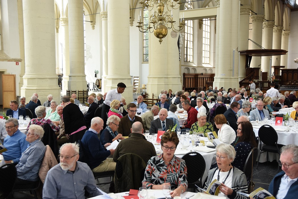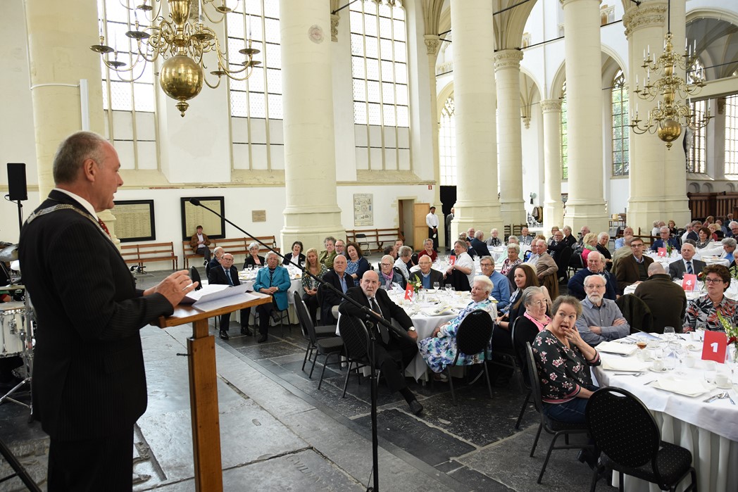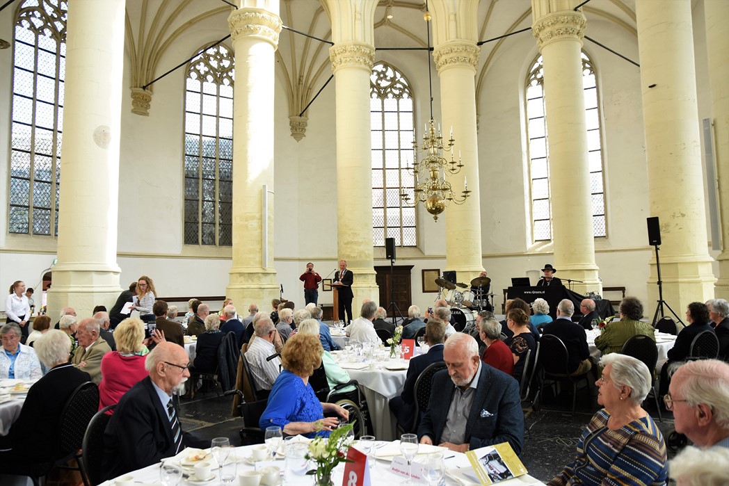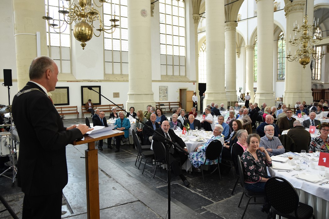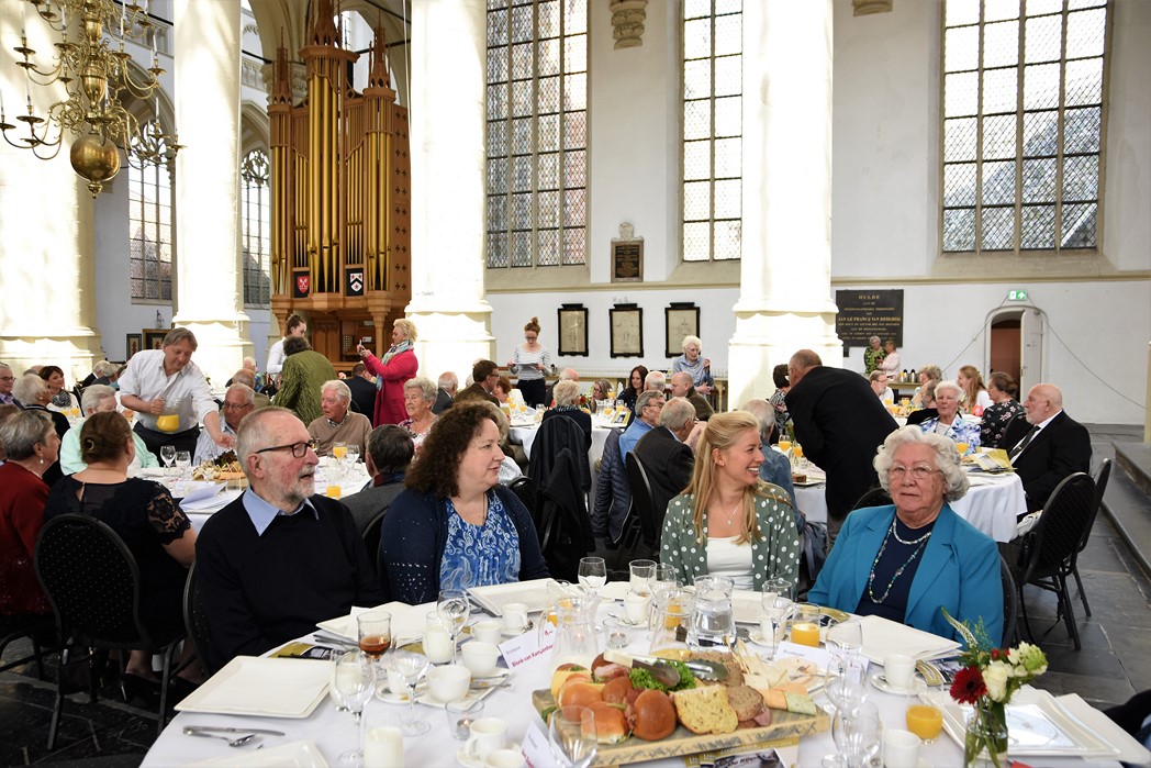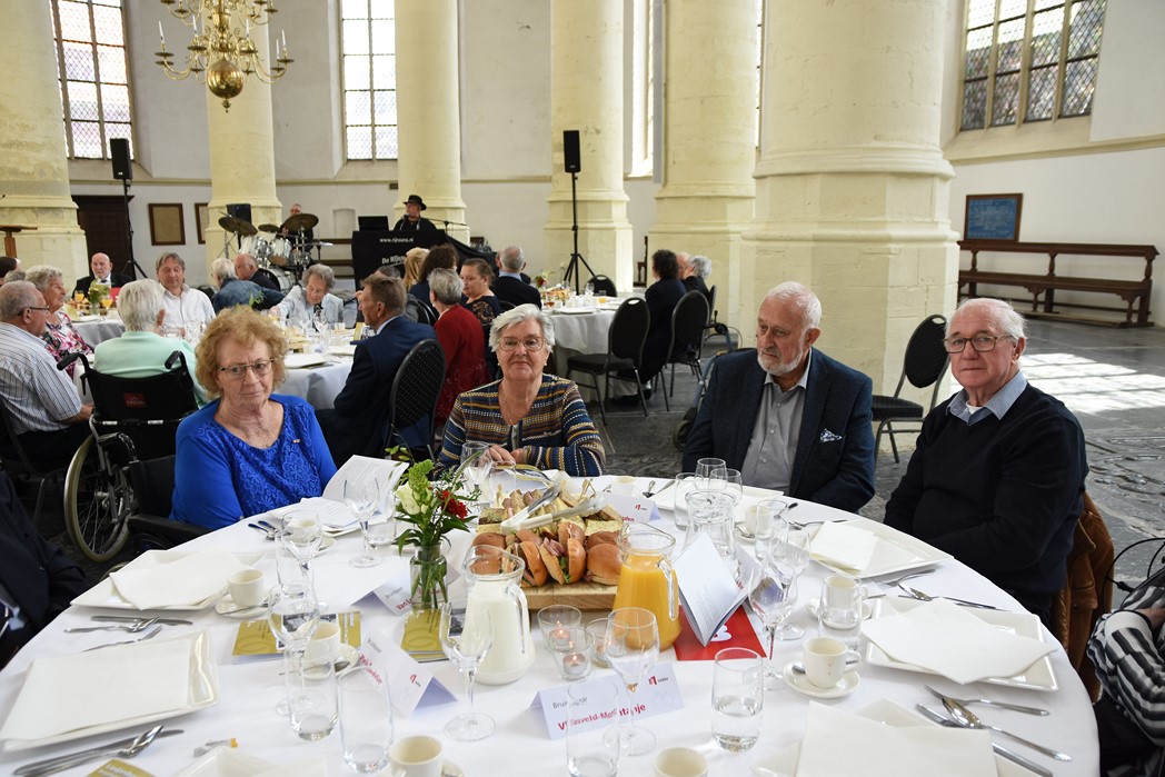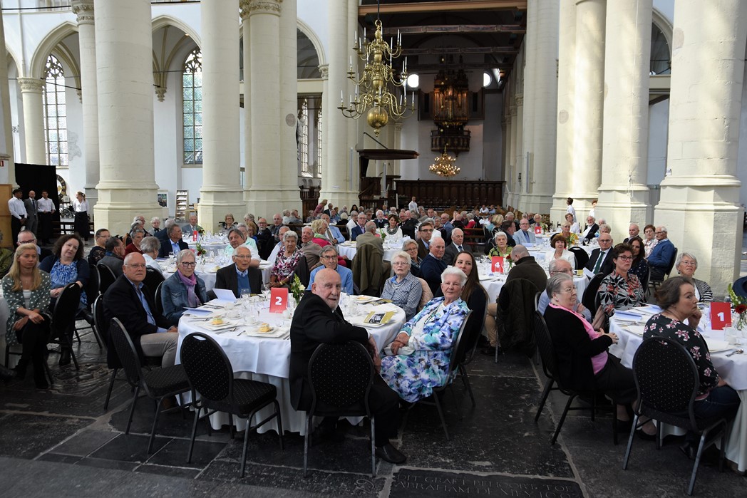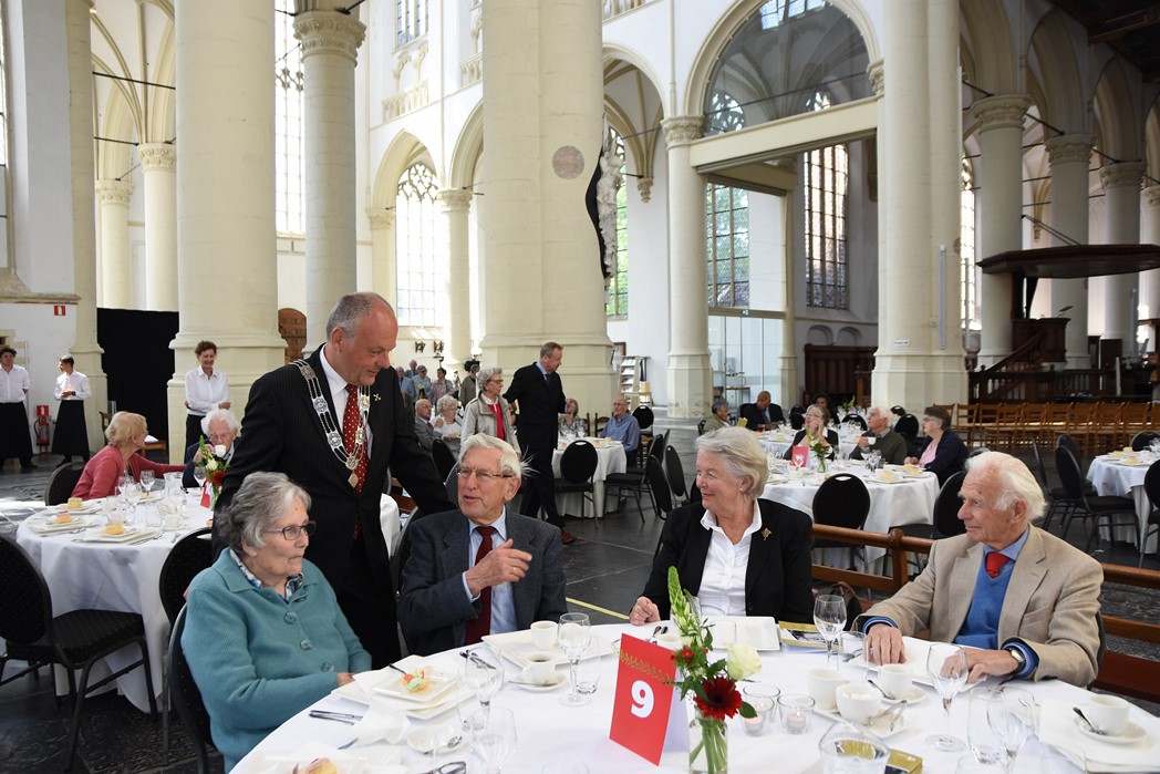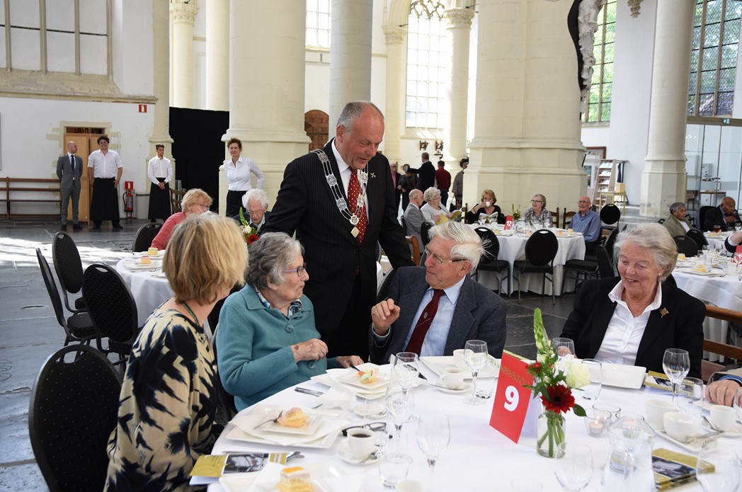 Maandagmiddag was in de Hooglandsekerk de jaarlijkse bruidsparenmiddag. Leidse bruidsparen die 60-, 65- of 70 jaar getrouwd zijn waren uitgenodigd voor een gezellige lunch.Burgemeester Henri Lenferink prees de echtparen voor hun doorzettingsvermogen. Er waren 51 bruidsparen naar de lunch gekomen waarvan zelfs 1 echtpaar dat 70 jaar getrouwd is. Normaal mag je eens in de 5 jaar komen, maar als u 70 of meer jaren getrouwd bent dan bent u elk jaar welkom vertelde de burgemeester. Na de toespraak en het zingen van het Leids Volkslied, brachten de Rijnsons de stemming er direct goed in en al snel zongen de bruidsparen alle nummers mee terwijl de eerste paren zich op de dansvloer waagden.