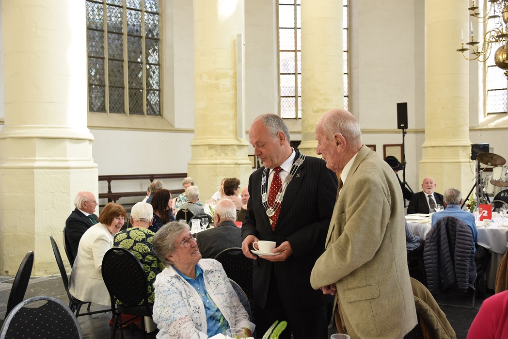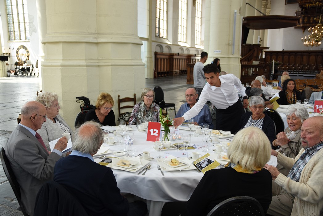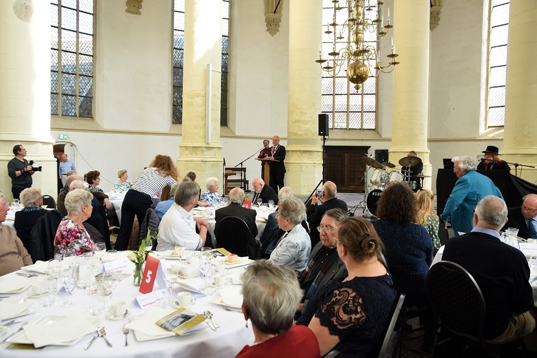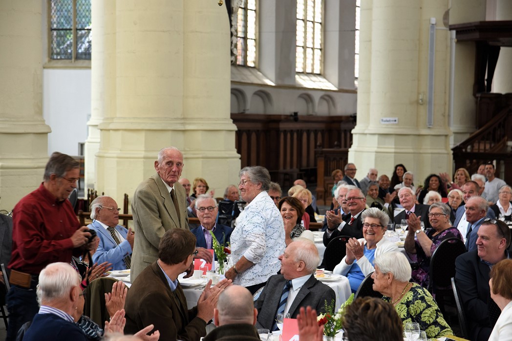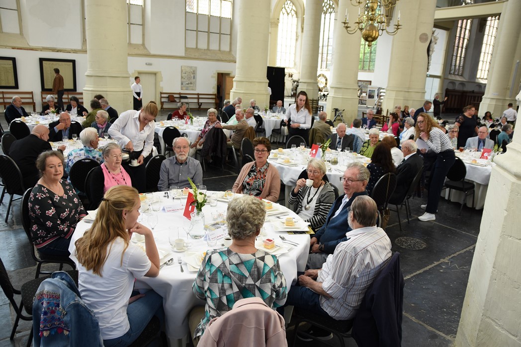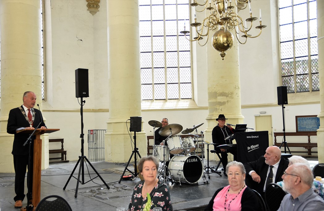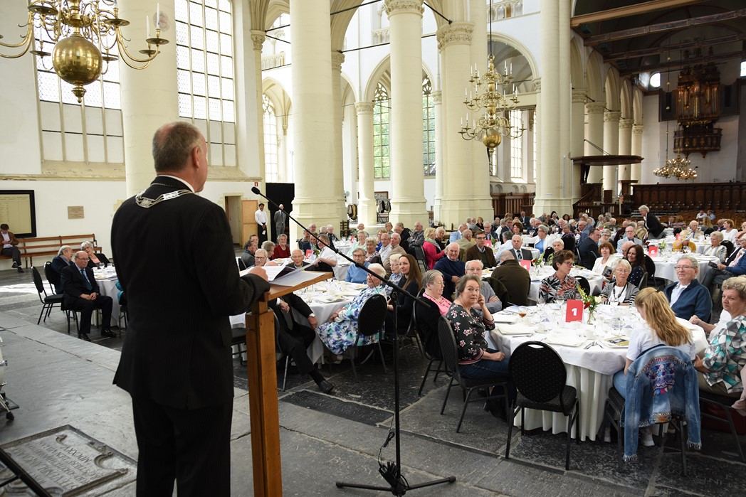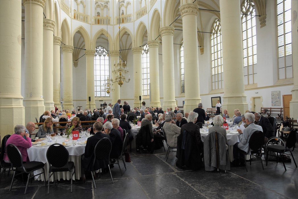 Maandagmiddag was in de Hooglandsekerk de jaarlijkse bruidsparenmiddag. Leidse bruidsparen die 60-, 65- of 70 jaar getrouwd zijn waren uitgenodigd voor een gezellige lunch.Burgemeester Henri Lenferink prees de echtparen voor hun doorzettingsvermogen. Er waren 51 bruidsparen naar de lunch gekomen waarvan zelfs 1 echtpaar dat 70 jaar getrouwd is. Normaal mag je eens in de 5 jaar komen, maar als u 70 of meer jaren getrouwd bent dan bent u elk jaar welkom vertelde de burgemeester. Na de toespraak en het zingen van het Leids Volkslied, brachten de Rijnsons de stemming er direct goed in en al snel zongen de bruidsparen alle nummers mee terwijl de eerste paren zich op de dansvloer waagden.