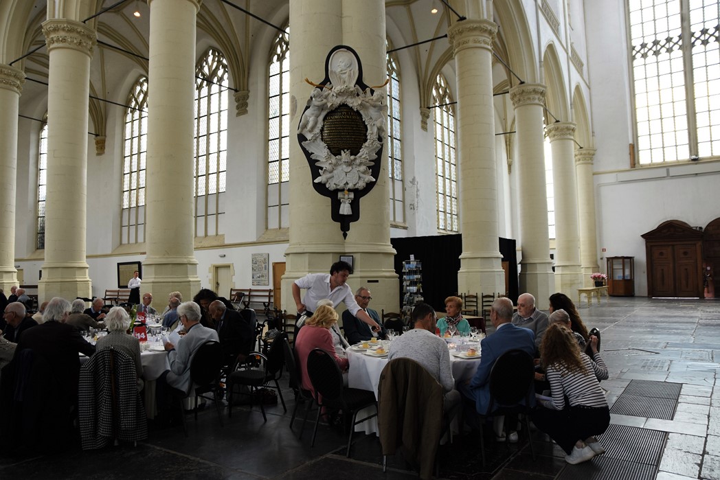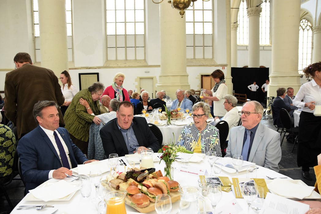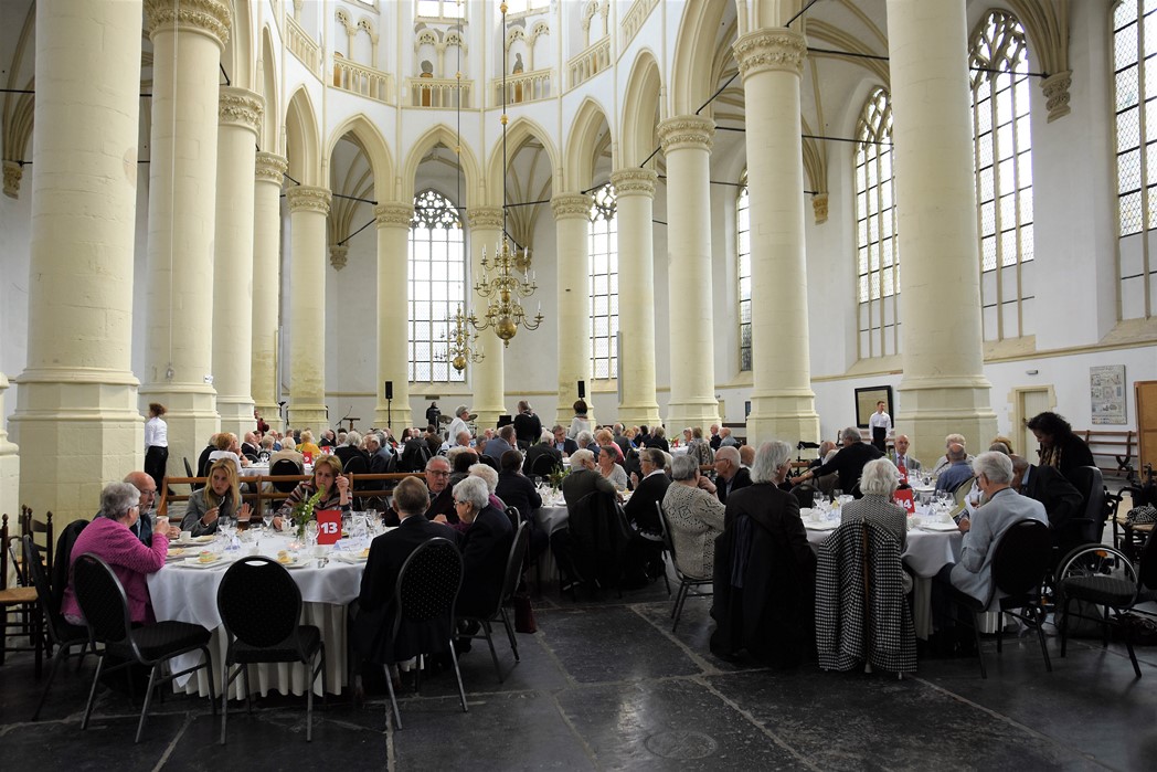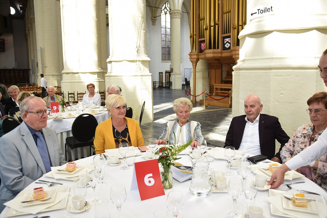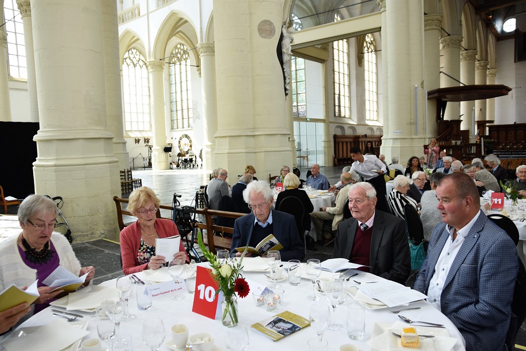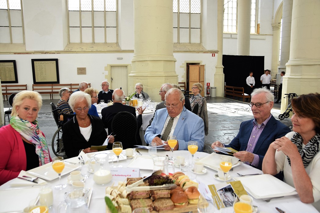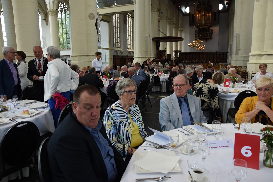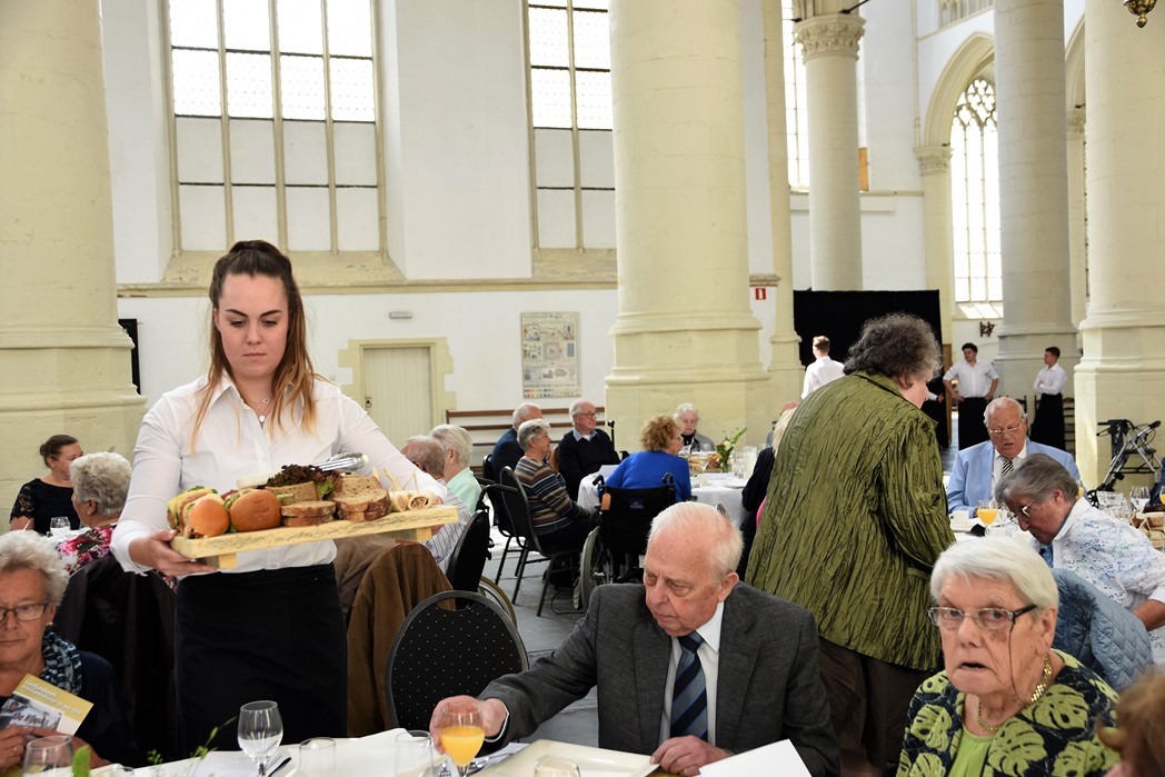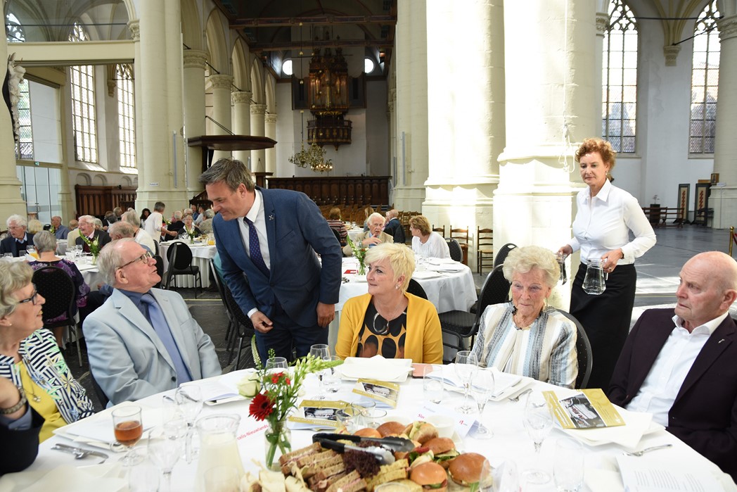 Maandagmiddag was in de Hooglandsekerk de jaarlijkse bruidsparenmiddag. Leidse bruidsparen die 60-, 65- of 70 jaar getrouwd zijn waren uitgenodigd voor een gezellige lunch.Burgemeester Henri Lenferink prees de echtparen voor hun doorzettingsvermogen. Er waren 51 bruidsparen naar de lunch gekomen waarvan zelfs 1 echtpaar dat 70 jaar getrouwd is. Normaal mag je eens in de 5 jaar komen, maar als u 70 of meer jaren getrouwd bent dan bent u elk jaar welkom vertelde de burgemeester. Na de toespraak en het zingen van het Leids Volkslied, brachten de Rijnsons de stemming er direct goed in en al snel zongen de bruidsparen alle nummers mee terwijl de eerste paren zich op de dansvloer waagden.
