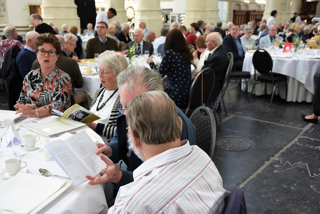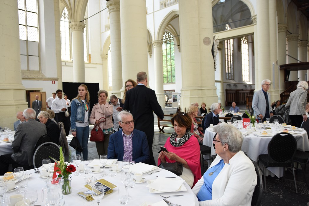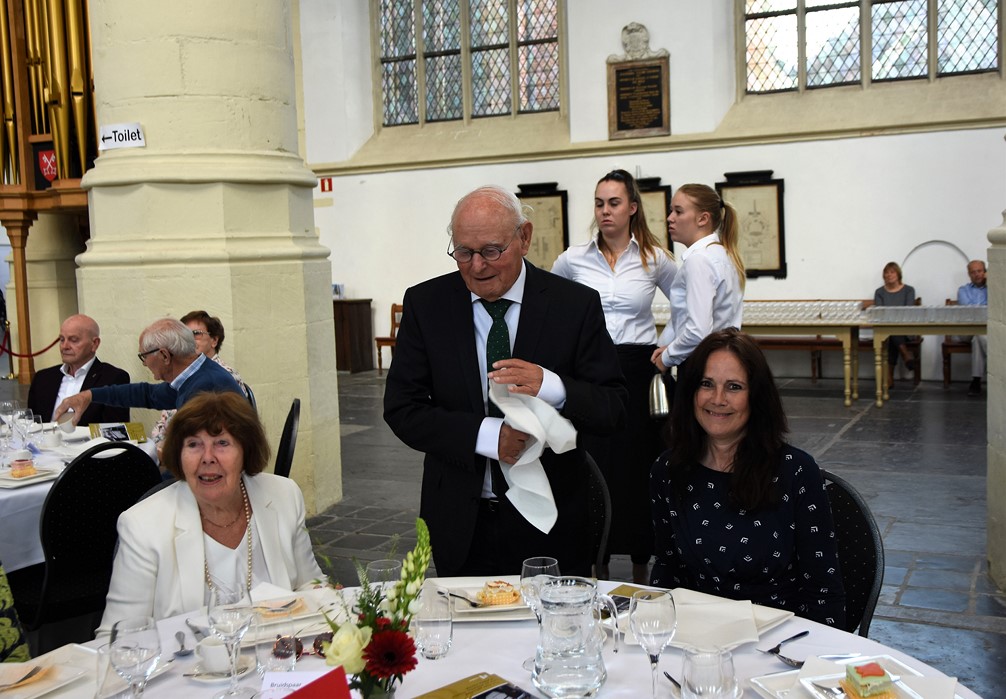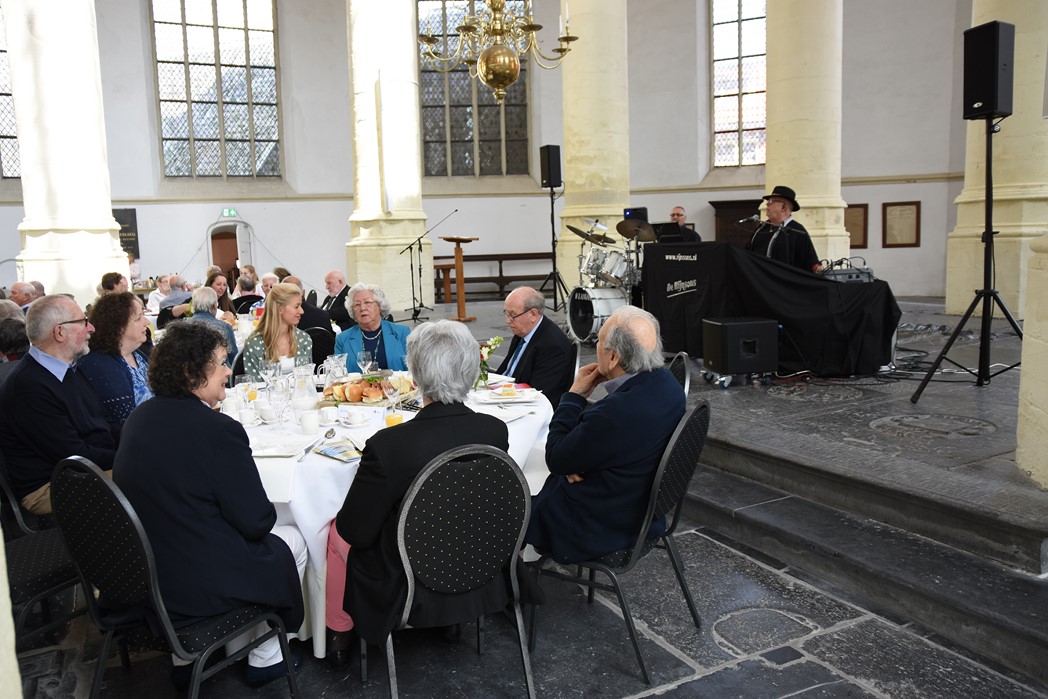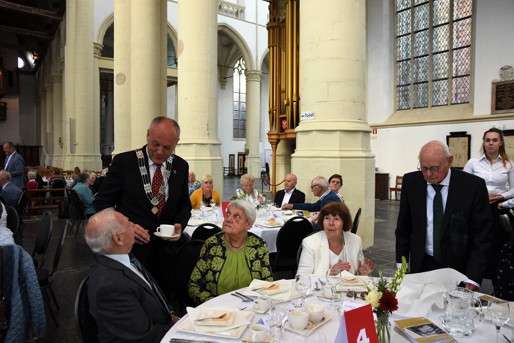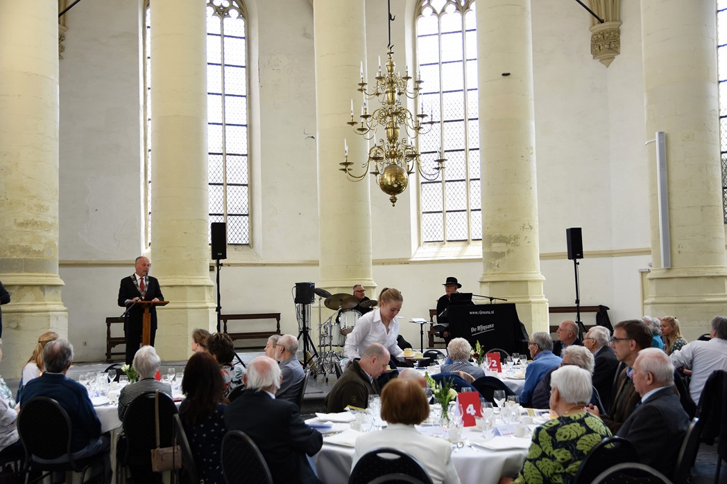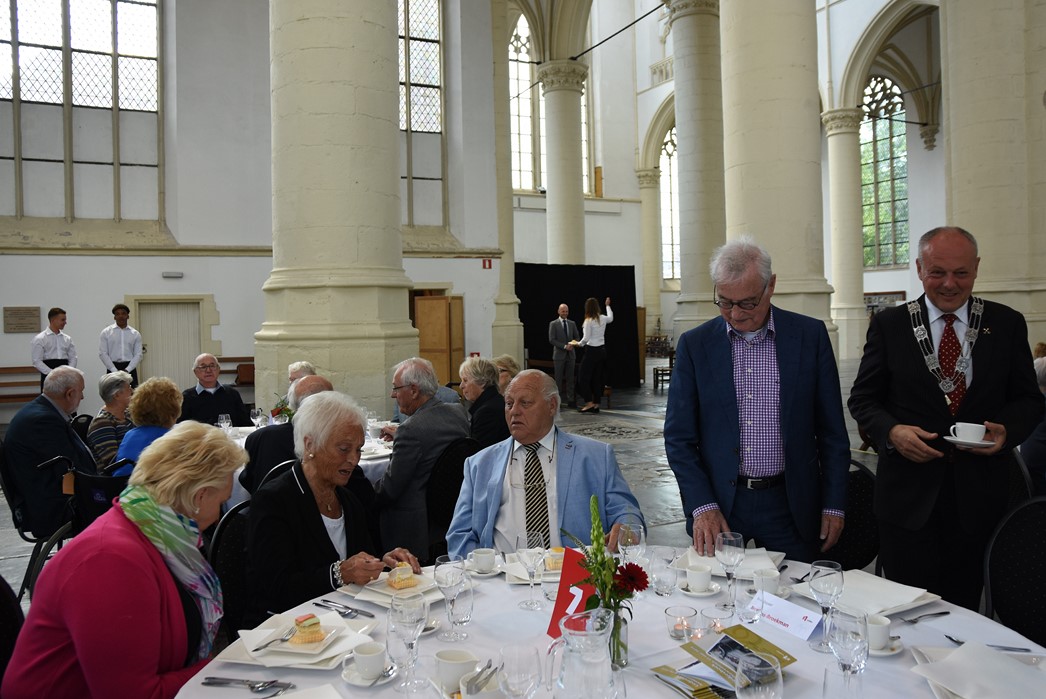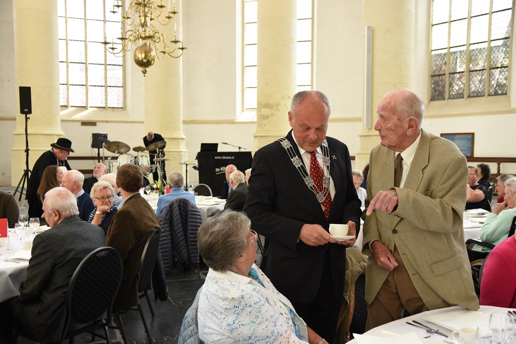 Maandagmiddag was in de Hooglandsekerk de jaarlijkse bruidsparenmiddag. Leidse bruidsparen die 60-, 65- of 70 jaar getrouwd zijn waren uitgenodigd voor een gezellige lunch.Burgemeester Henri Lenferink prees de echtparen voor hun doorzettingsvermogen. Er waren 51 bruidsparen naar de lunch gekomen waarvan zelfs 1 echtpaar dat 70 jaar getrouwd is. Normaal mag je eens in de 5 jaar komen, maar als u 70 of meer jaren getrouwd bent dan bent u elk jaar welkom vertelde de burgemeester. Na de toespraak en het zingen van het Leids Volkslied, brachten de Rijnsons de stemming er direct goed in en al snel zongen de bruidsparen alle nummers mee terwijl de eerste paren zich op de dansvloer waagden.