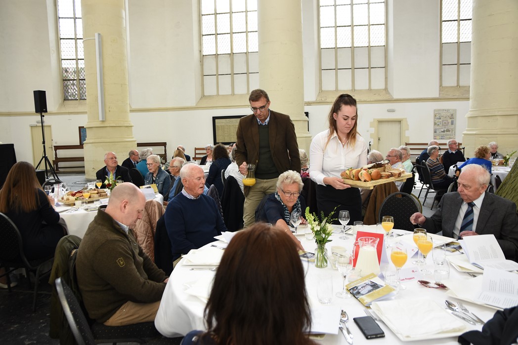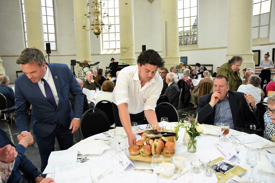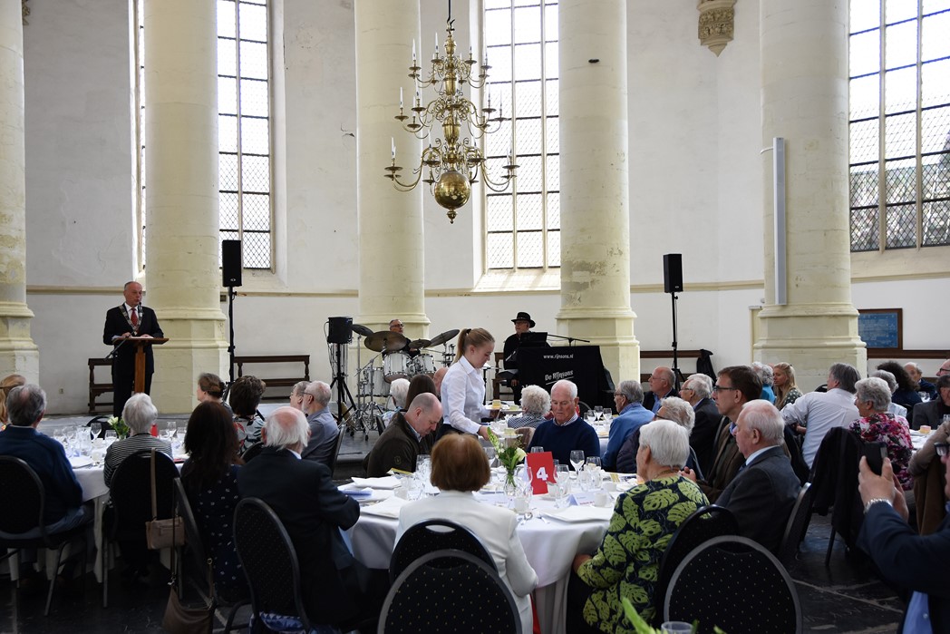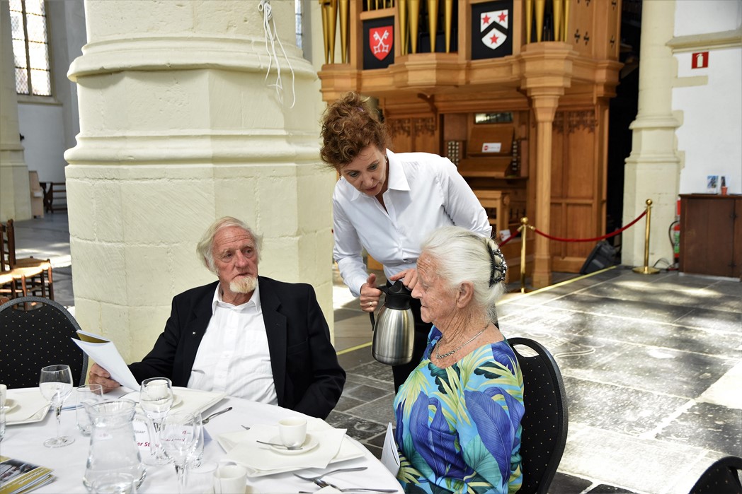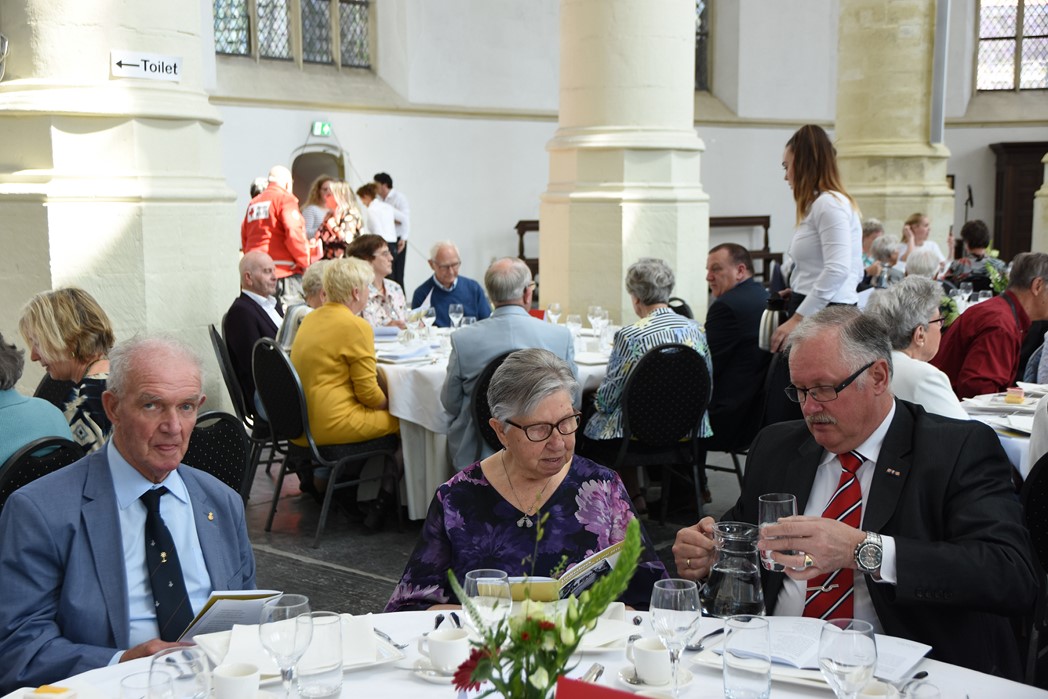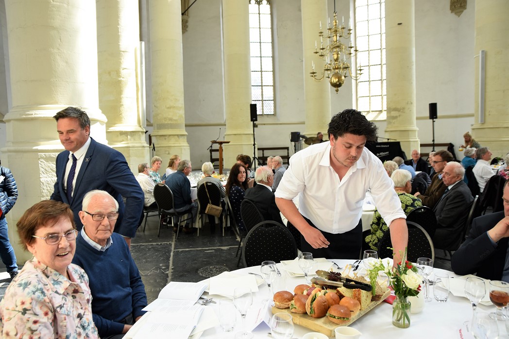 Na het eerste optreden van de Rijnsons werd de lunch geserveerd. Tijdens de lunch ging burgemeester Lenferink met de bruidsparen van elke tafel op de foto, wat een behoorlijke en tijdrovende operatie was. Alle bruidsparen krijgen eerdaags de bij hun tafel gemaakte foto opgestuurd.