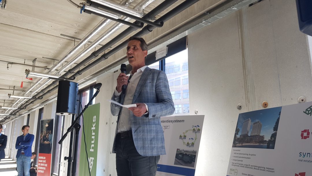 Chris de Waard stapte met wethouder Fleur Spijker in de bouwlift richting het 52 meter hoger gelegen dak van De Lorentz.