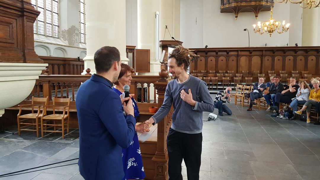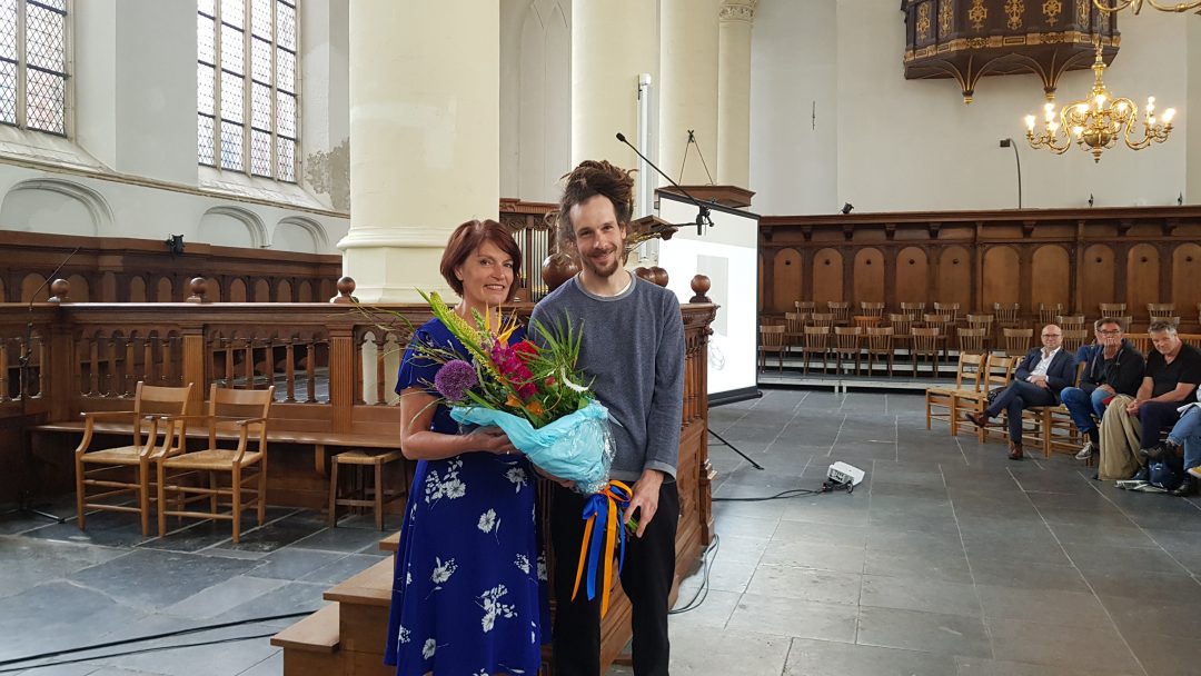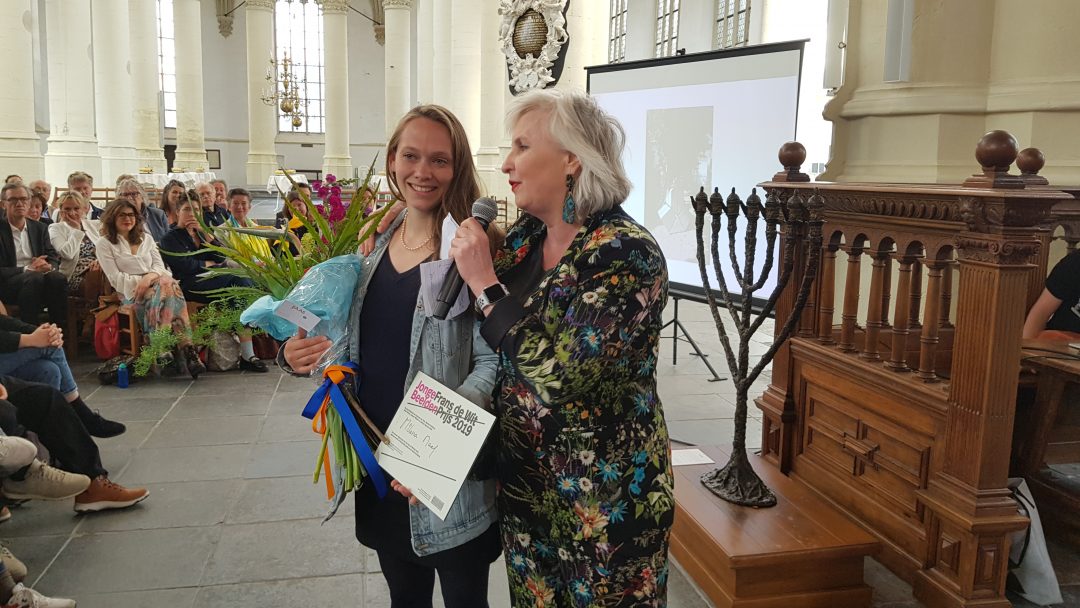 De prijzen gingen naar twee kunstenaars die oorspronkelijk uit Zwitserland komen. De Frans de Witprijs was voor Milena Naef, die komend uit een familie van beeldhouwers – zij is de vierde generatie – zoekende is naar haar eigen vorm. Voor haar werk van bij elkaar gebonden stenen blokken koos zij voor het traditionele marmer. Helaas was het werk al voor de opening gevandaliseerd. “Het is ook best gevaarlijk om dat te doen, want het zijn hele zware blokken.” Verder was Naef uiteraard heel erg blij met de prijs en de erkenning voor haar werk.