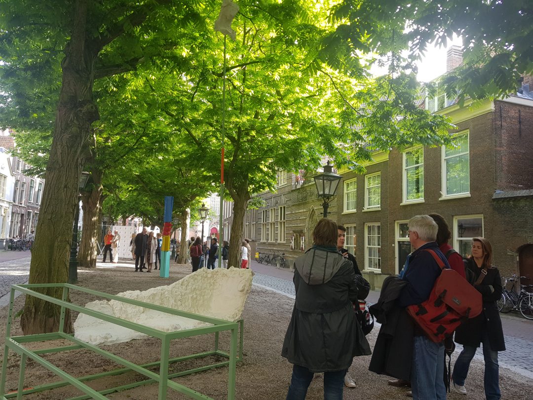 Ieder jaar zet de stichting Beelden in Leiden jonge kunstenaars in de schijnwerpers op een van de mooiste straten in de Leidse binnenstad. Dit keer was er gekozen voor jonge beeldhouwers die voor het eerst een kunstwerk voor de openbare ruimte zouden gaan maken. De woorden hufterproof en weerbestendig vielen vaak tijdens de opening op donderdag 16 mei in de Hooglandse kerk.
