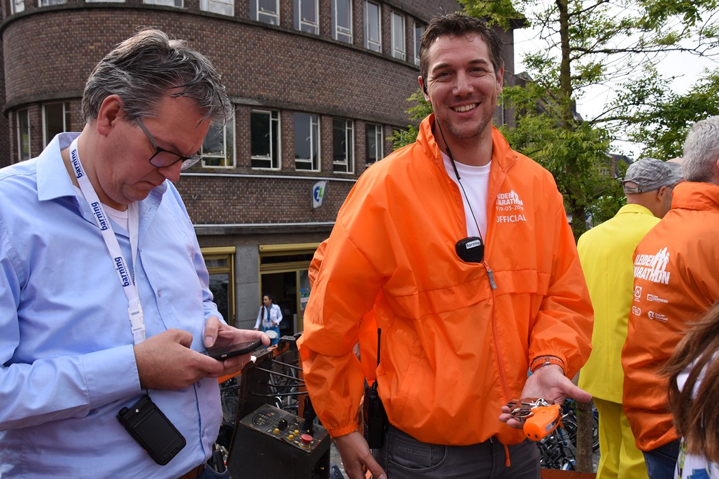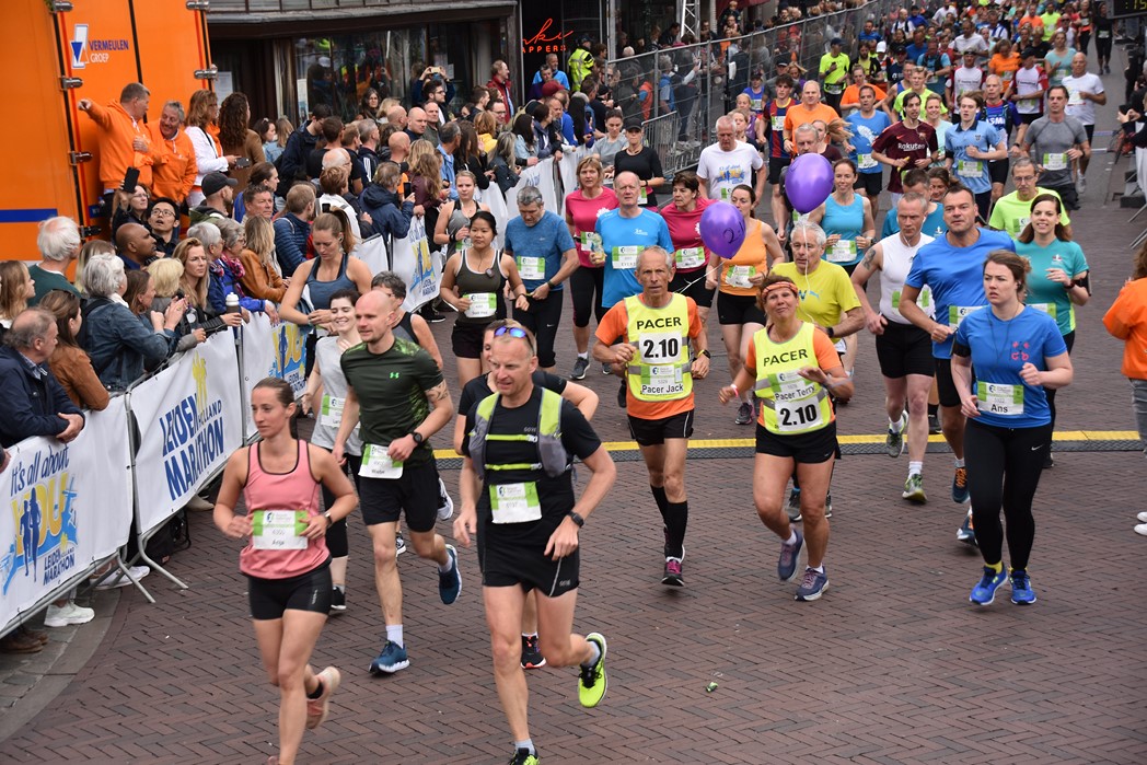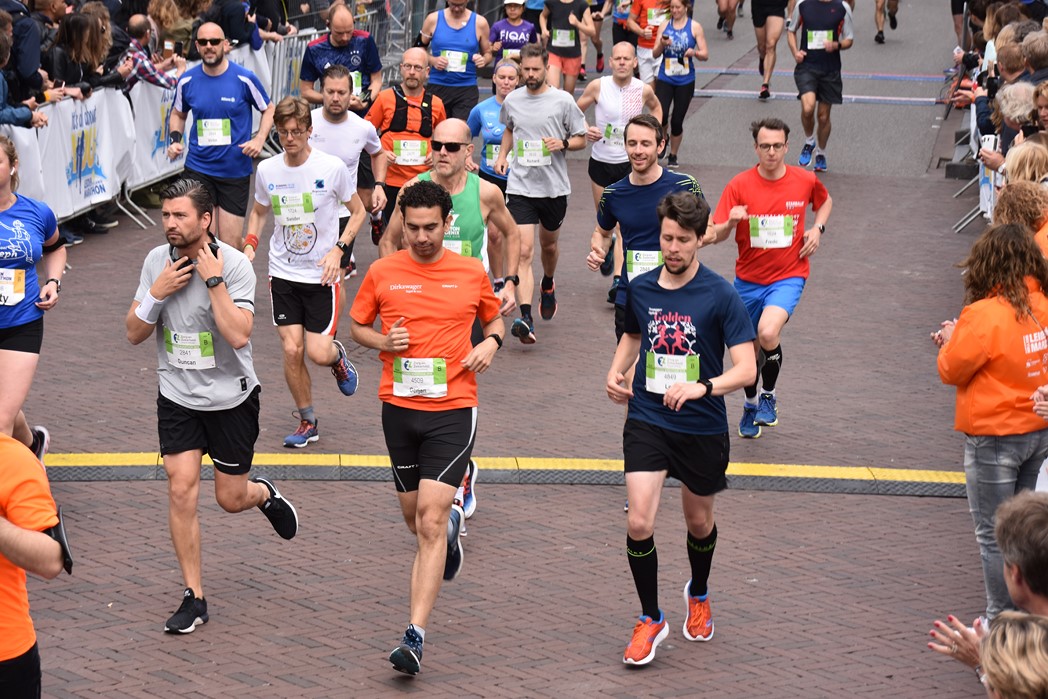 Het echte werk begon natuurlijk op zondag met op het programma de halve marathon, de hele marathon, de befaamde kidsrun en tot slot de 10 km. Waar vorig jaar de warmte flink wat deelnemers parten speelde, was het nu een stuk koeler. In de loop van de middag werd het bij de finish zelfs behoorlijk koud voor de vrijwilligers en de toeschouwers, door een aanwakkerende wind die vochtige lucht aanvoerde. Maar het bleef droog en de medische hulpverleners hadden nauwelijks wat te doen.