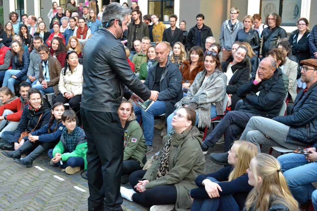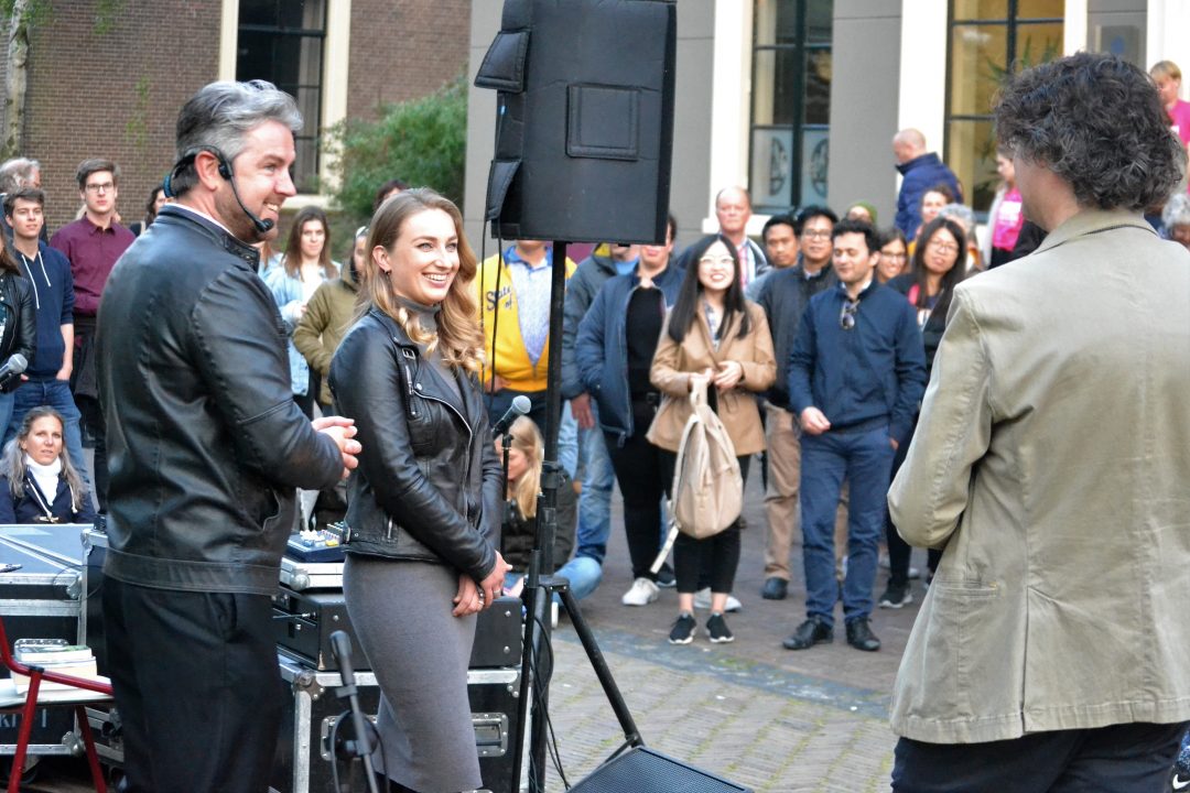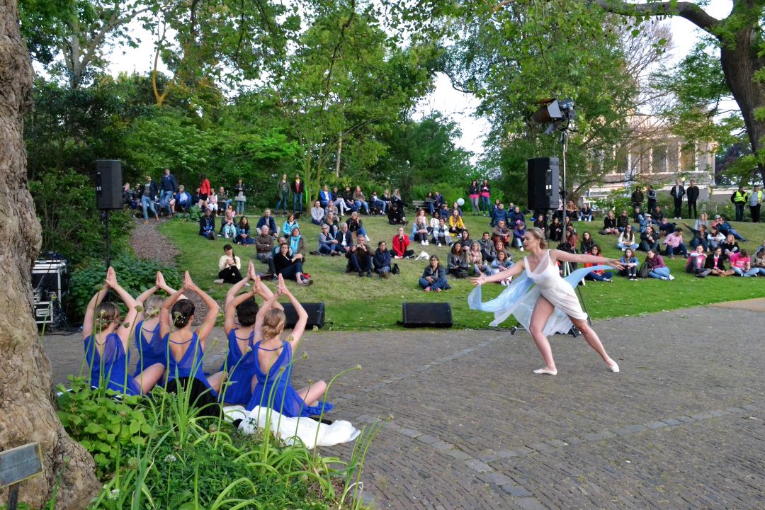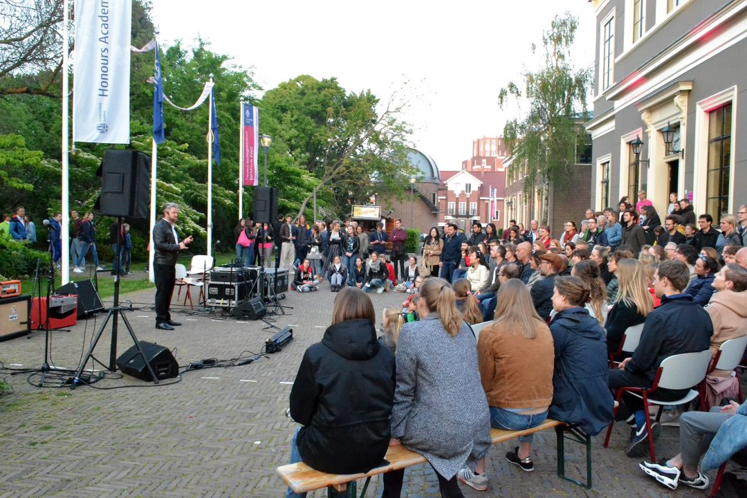 En er is lichtvoetiger aanbod; serieus met een recreatieve toon. In het Academiegebouw werd gedanst; onder meer Echo door DansBlok. Twee hooggehakte, modern geklede danseressen in een statige zaal is toch wel een bijzondere ervaring. Of de bieryoga die in de tuin van Boerhaave kon worden gevolgd. Tribes die Tale of the elves dansten in de Hortus. Op een plek die als twee druppels water een miniatuurversie van Woodstock is, glooiend en wel. Een plek waar ook René Oskam prima mee uit de voeten kan met zijn (korte, geestige) gedichten, aanschurend tegen banaliteit. Of honderd meter verderop, aan de Sterrenwachtlaan, waar mentalist Alex Blackwood zijn publiek tóch weer verbaasde met zijn gedachten lezen. Op die ene mevrouw na waarvan hij al na een paar seconden zei “u bent niet te lezen”. Echt? Of om de illusie echter te laten lijken? Een ligconcert van Fretless in een van de zalen van Volkenkunde: hypnotiserende Arabische klanken.