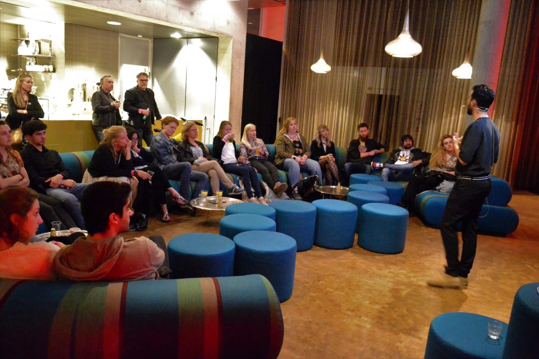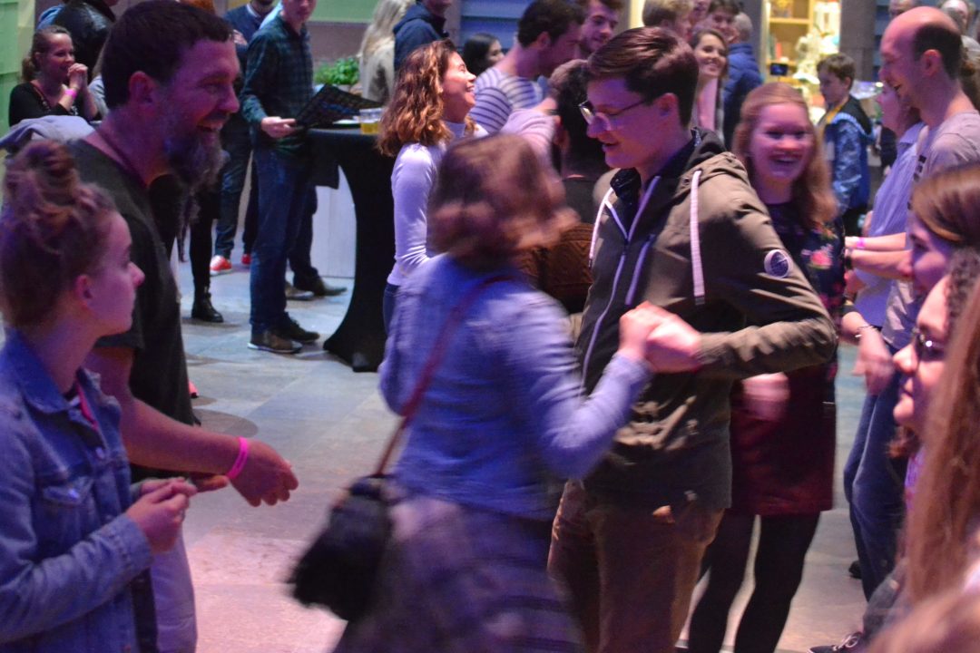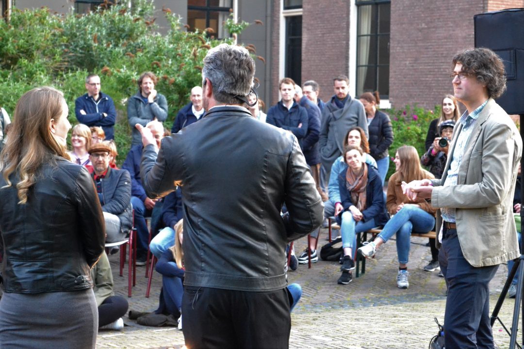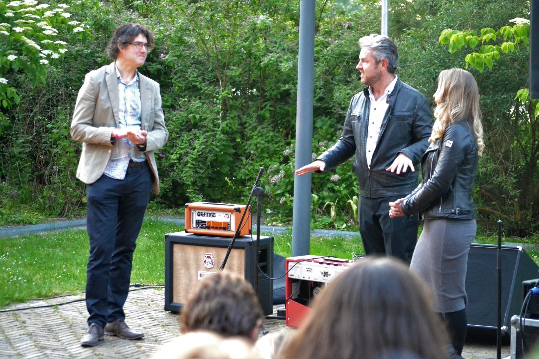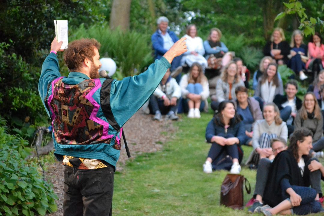 En er is lichtvoetiger aanbod; serieus met een recreatieve toon. In het Academiegebouw werd gedanst; onder meer Echo door DansBlok. Twee hooggehakte, modern geklede danseressen in een statige zaal is toch wel een bijzondere ervaring. Of de bieryoga die in de tuin van Boerhaave kon worden gevolgd. Tribes die Tale of the elves dansten in de Hortus. Op een plek die als twee druppels water een miniatuurversie van Woodstock is, glooiend en wel. Een plek waar ook René Oskam prima mee uit de voeten kan met zijn (korte, geestige) gedichten, aanschurend tegen banaliteit. Of honderd meter verderop, aan de Sterrenwachtlaan, waar mentalist Alex Blackwood zijn publiek tóch weer verbaasde met zijn gedachten lezen. Op die ene mevrouw na waarvan hij al na een paar seconden zei “u bent niet te lezen”. Echt? Of om de illusie echter te laten lijken? Een ligconcert van Fretless in een van de zalen van Volkenkunde: hypnotiserende Arabische klanken.