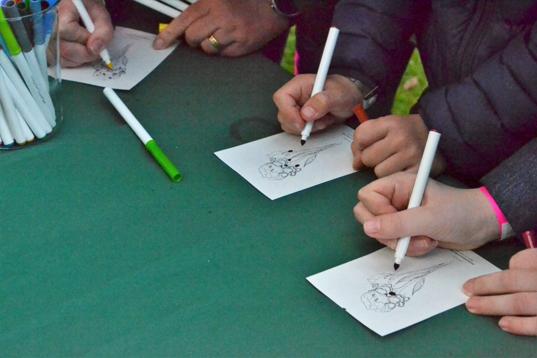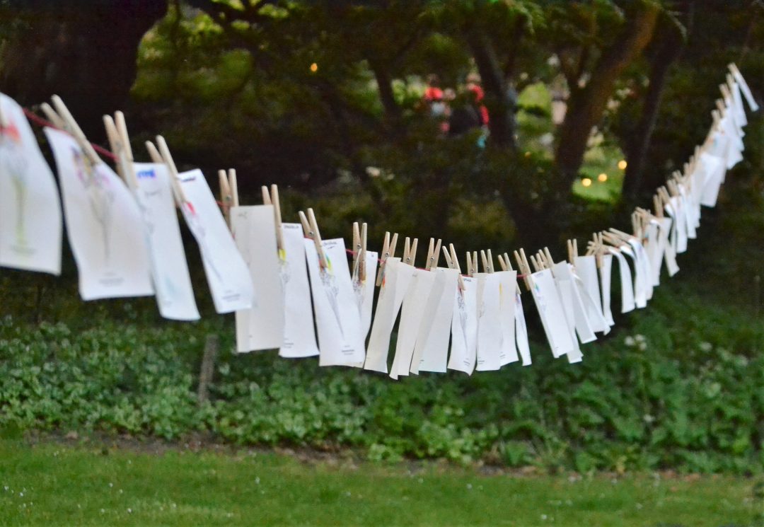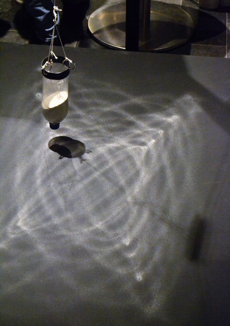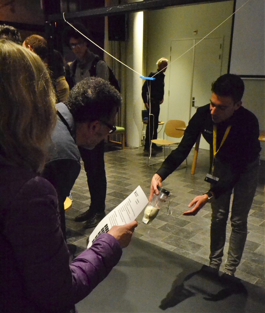 De Museumnacht was en is ook een nacht waarin veel te dóen is. Natuurlijk passief consumeren, was ook mogelijk. Maar daarnaast waren er vele vormen van dóen. In de Hortus was de Museumnachtbloem te vinden, een creatie van Studio Lakmoes. Zij zijn één van de weinig bedrijven in Nederland die zijn gespecialiseerd in ‘visualisatie van complexe kennis’. De Museumnachtbloem is een voorbeeld van chromatografie, de kennis dat verschillende stoffen ook verschillende gewichten hebben en dus niet allemaal op dezelfde snelheid en met hetzelfde resultaat bewegen. Door op vloeipapier of een koffiefilter een stip te zetten met een (níet-watervaste!!) viltstift, dat papier in een bodempje water te zetten, trekken de afzonderlijke pigmenten in de kleur omhoog. De lichtste het verst naar boven; ze scheiden van elkaar. Een ogenschijnlijk simpel trucje; maar het principe wordt ook gebruikt bij DNA-bepaling.