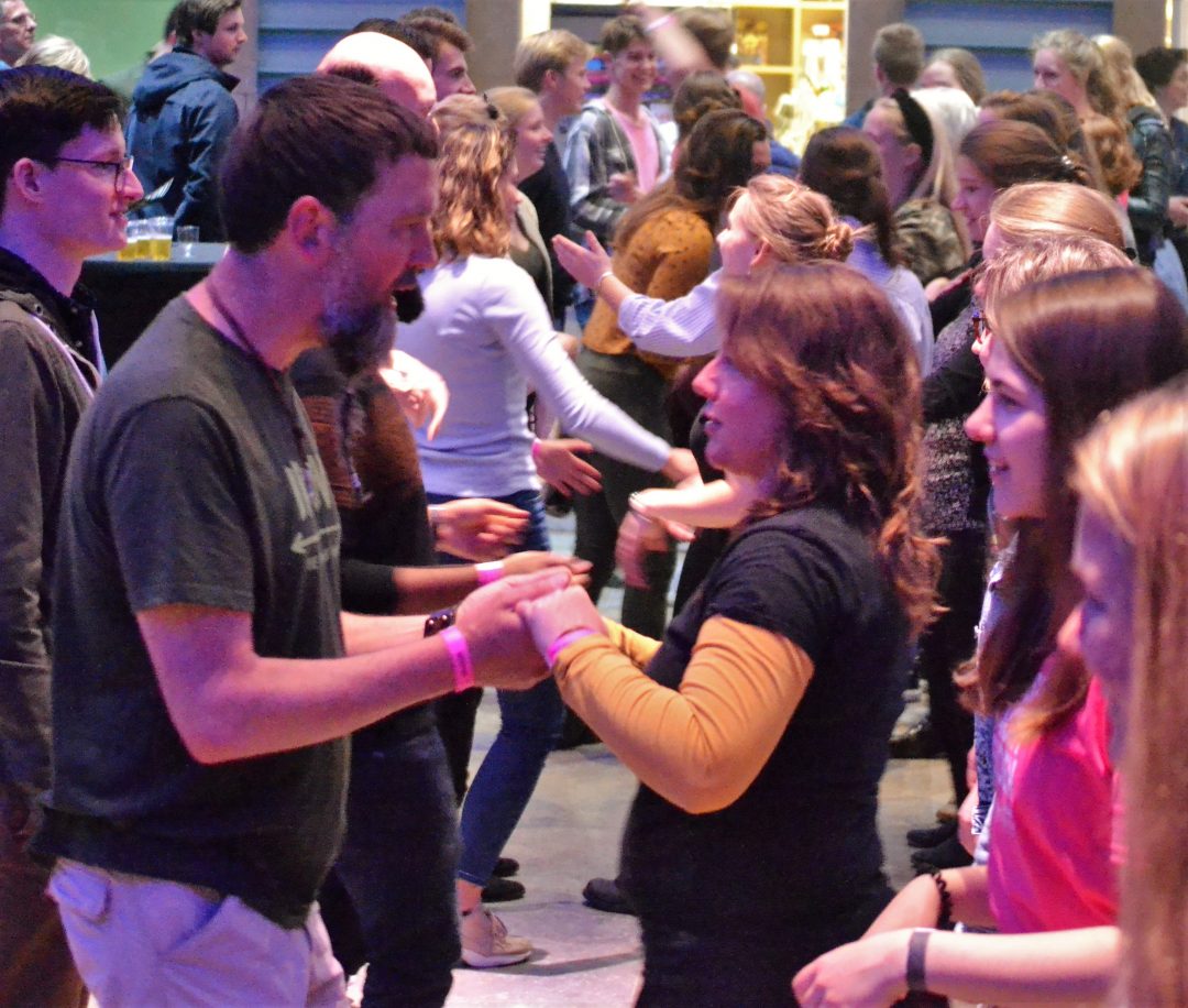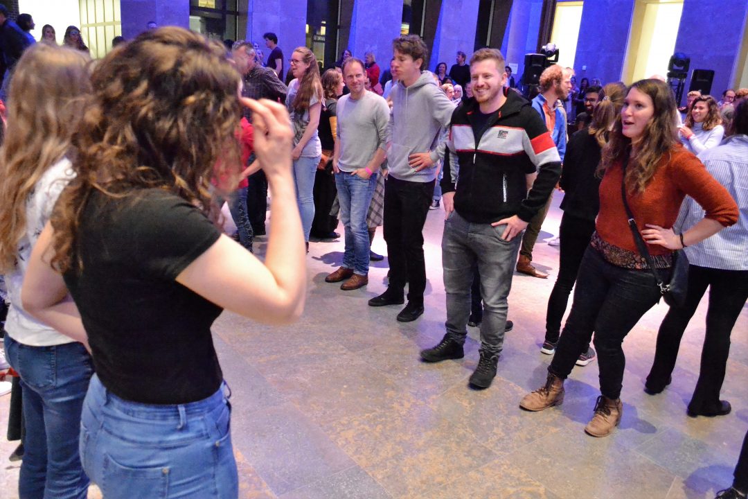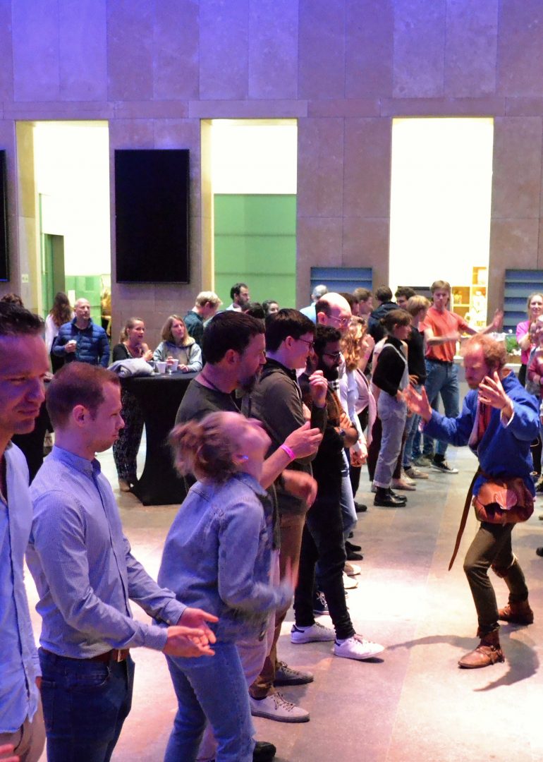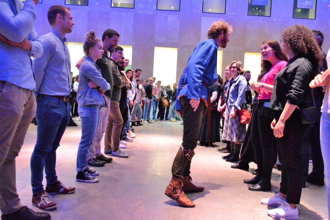 In het museum van Volkenkunde zagen we figuur-knippende mensen, nét niet met de tong naar buiten van concentratie. Of de wel tachtig(!!) deelnemers aan de Middeleeuwse dans die Datura hen leerde. “Mocht u filmpjes hebben gemaakt en die op Instagram of Facebook delen; wij willen ze ook graag hebben”: een terecht oproep van Datura, want zo te zien, hebben alle deelnemers met heel veel plezier de dans van merries en hengsten gedanst! Tachtig mensen! Terwijl in de meeste theaterzalen de eerste rijen leeg blijven uit angst op het podium te worden geroepen.