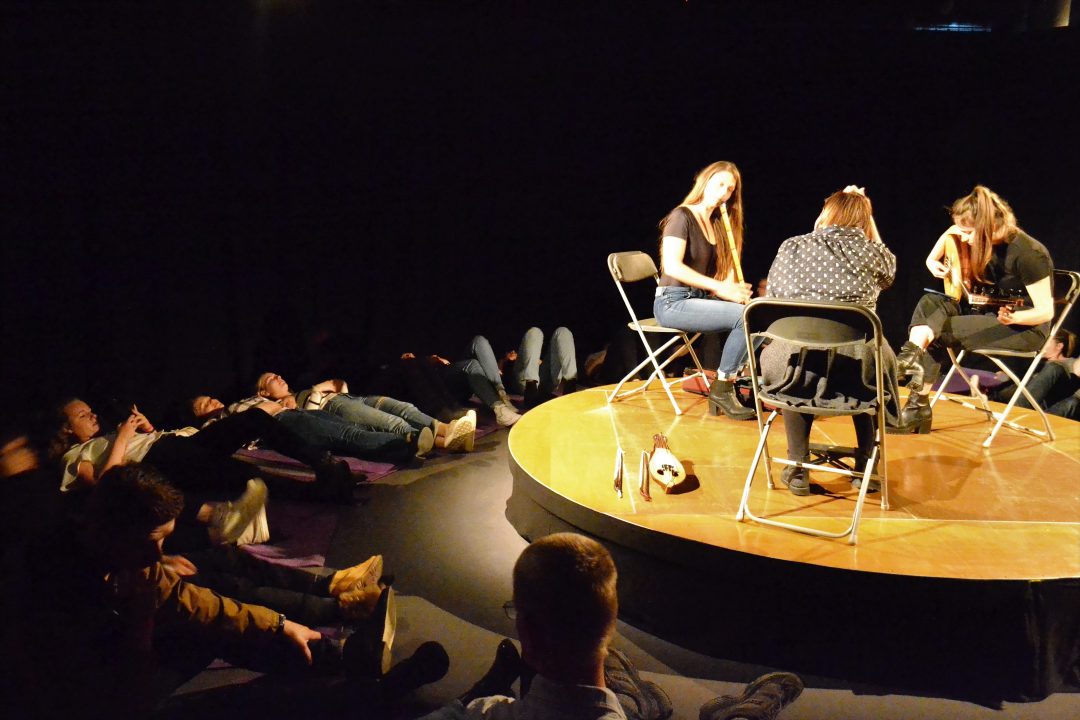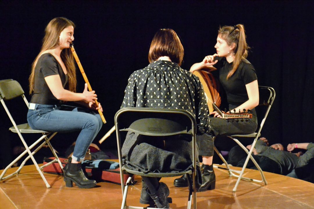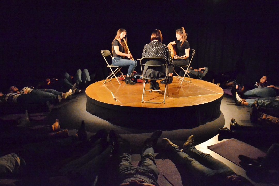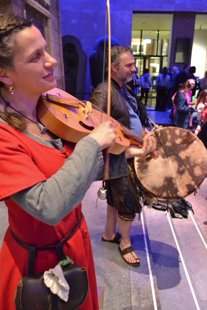 In het museum van Volkenkunde zagen we figuur-knippende mensen, nét niet met de tong naar buiten van concentratie. Of de wel tachtig(!!) deelnemers aan de Middeleeuwse dans die Datura hen leerde. “Mocht u filmpjes hebben gemaakt en die op Instagram of Facebook delen; wij willen ze ook graag hebben”: een terecht oproep van Datura, want zo te zien, hebben alle deelnemers met heel veel plezier de dans van merries en hengsten gedanst! Tachtig mensen! Terwijl in de meeste theaterzalen de eerste rijen leeg blijven uit angst op het podium te worden geroepen.