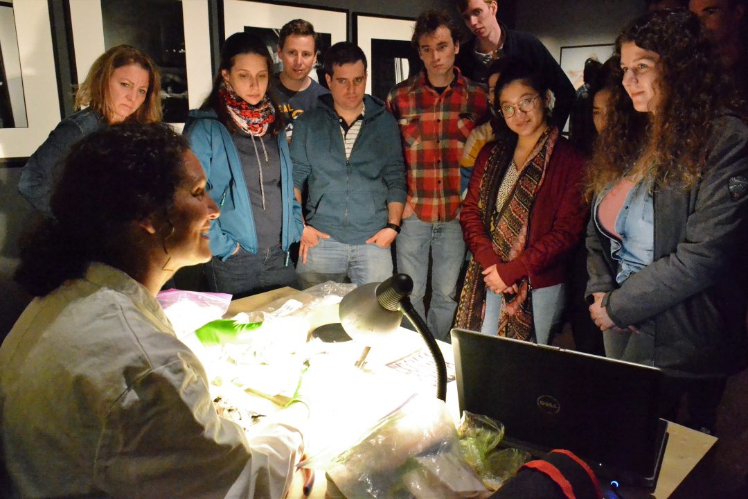 Musea dragen via hun collecties kennis over. In de Museumnacht konden we daar wat nauwkeuriger naar kijken. Hoe vaak sta je in het Sieboldhuis met je neus op het ontleden en opzetten van een appelvink? Een luguber idee misschien, maar tegelijk is ook het opvallendste: het respect van de taxidermist voor het dode beestje. In de Hortus kwamen in de schemering fluorescerende bacteriën ’tot leven’. En, heel dicht bij het idee dat de Museumnacht de musea centraal moet stellen, er waren heel directe kennisoverdrachten: rondleidingen en lezingen. Waar de (terechte) vraag is wat nu het verschil is tussen de Museumnacht en de Nacht van Kunst&Kennis, wordt een deel van antwoord hier gegeven. Het Academiegebouw; ook daar een rondleiding langs plekken als ‘het zweetkamertje’. In de Hortus de rondleiding langs “goudgele planten”, vanuit Old School de wandeling langs Leidse muurgedichten, in Boerhaave de ‘speed rondleiding’ met een conservator. Het zijn de momenten waarin musea de kennis van hun conservatoren en andere deskundigen maximaal beschikbaar stellen; en wie zo’n rondleiding eens meemaakte, weet nu dat die héél veel meer weten en te vertellen hebben dan op de collectie-kaartjes staat.