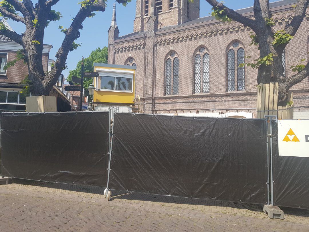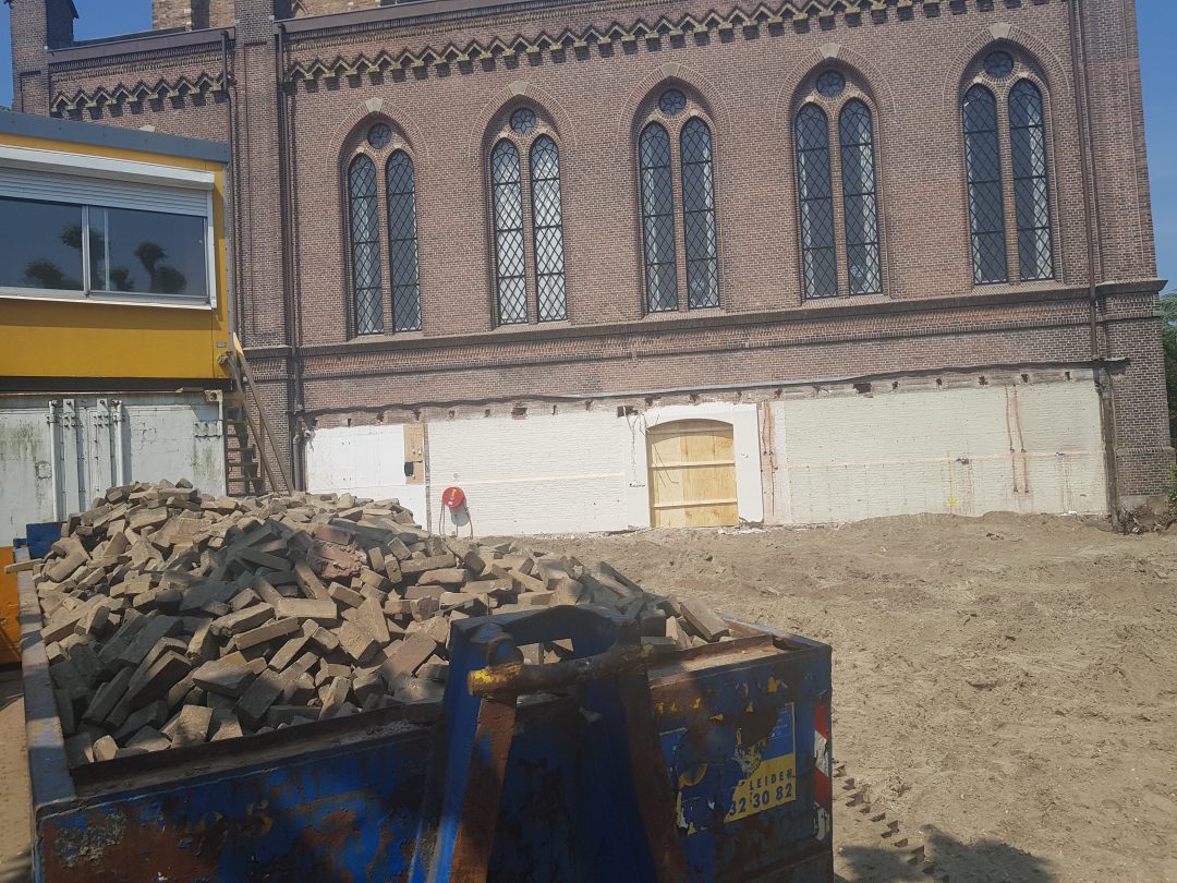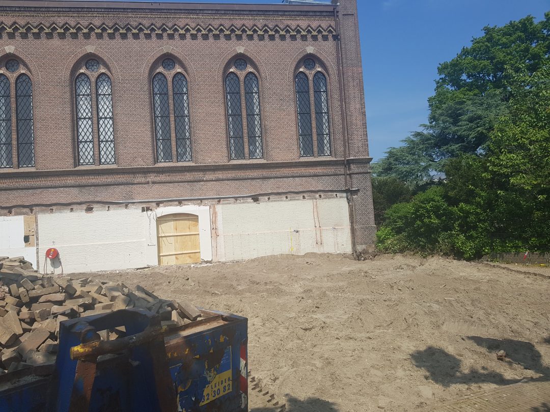 Bij de kerk zijn begin deze maand de werkzaamheden begonnen met het slopen van gebouw De Hoeksteen. (Foto’s: Sleutelstad).