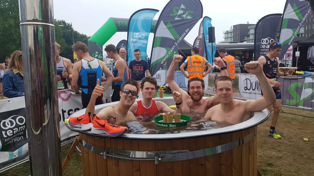 Na een zwaar zwemonderdeel in het 14 graden koude Gooimeer was het podium voor de ZVL-heren nog allerminst in zicht. Op de aansluitende tijdrit op de Gooimeerdijk kwamen ze duidelijk meer in hun element. Met een gemiddelde van ruim 39 km/u verdampte hun achterstand op de concurrentie. De twee afsluitende looprondes gingen in een gemiddelde tijd van 3.08 per kilometer. Goed voor een eindtijd van 1:01:24 en dat was dertien seconden sneller dan TV Dordrecht.