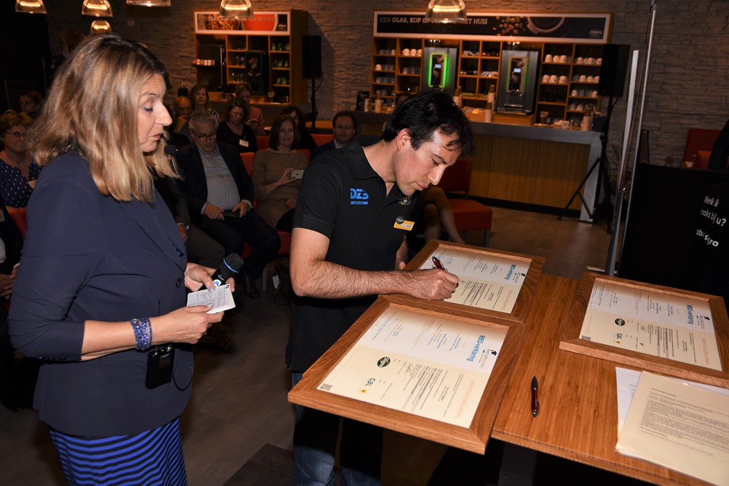 Staatssecretaris van Sociale Zaken en Werkgelegenheid Tamara van Ark reikte gisteren de eerste twee mbo-praktijkverklaringen uit. Ze deed dat tijdens een werkbezoek aan Sligro Leiden. Sligro werkt samen met DZB Leiden in een landelijke pilot om mensen zonder startkwalificatie praktijkverklaringen te laten behalen.