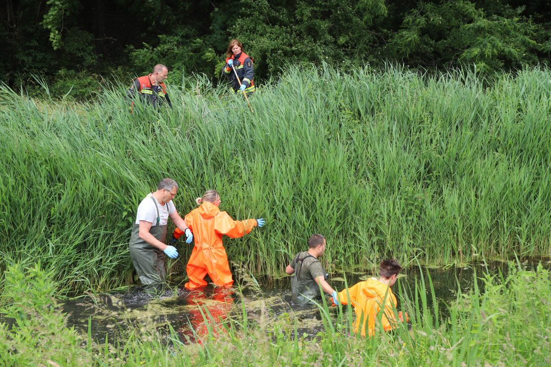 Manschappen van de brandweer doorzochten ook een sloot aan de Campingweg in Katwijk, op zoek naar eventuele sporen die kunnen leiden naar de vermiste Katwijkse.